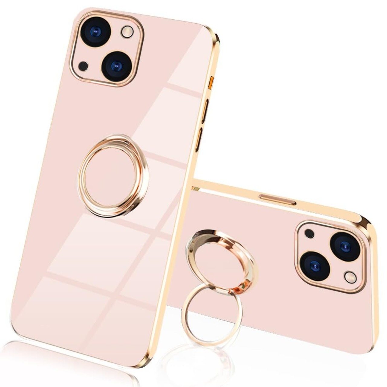 JOOBOY iPhone15 用 ケース リング付き メッキ加工 レンズ保護 tpu ソフト ストラップホール付き 耐衝撃 スリム おしゃれ アイフォン15 用 ケース (for iPhone15 6.1", ミルクティーの色)