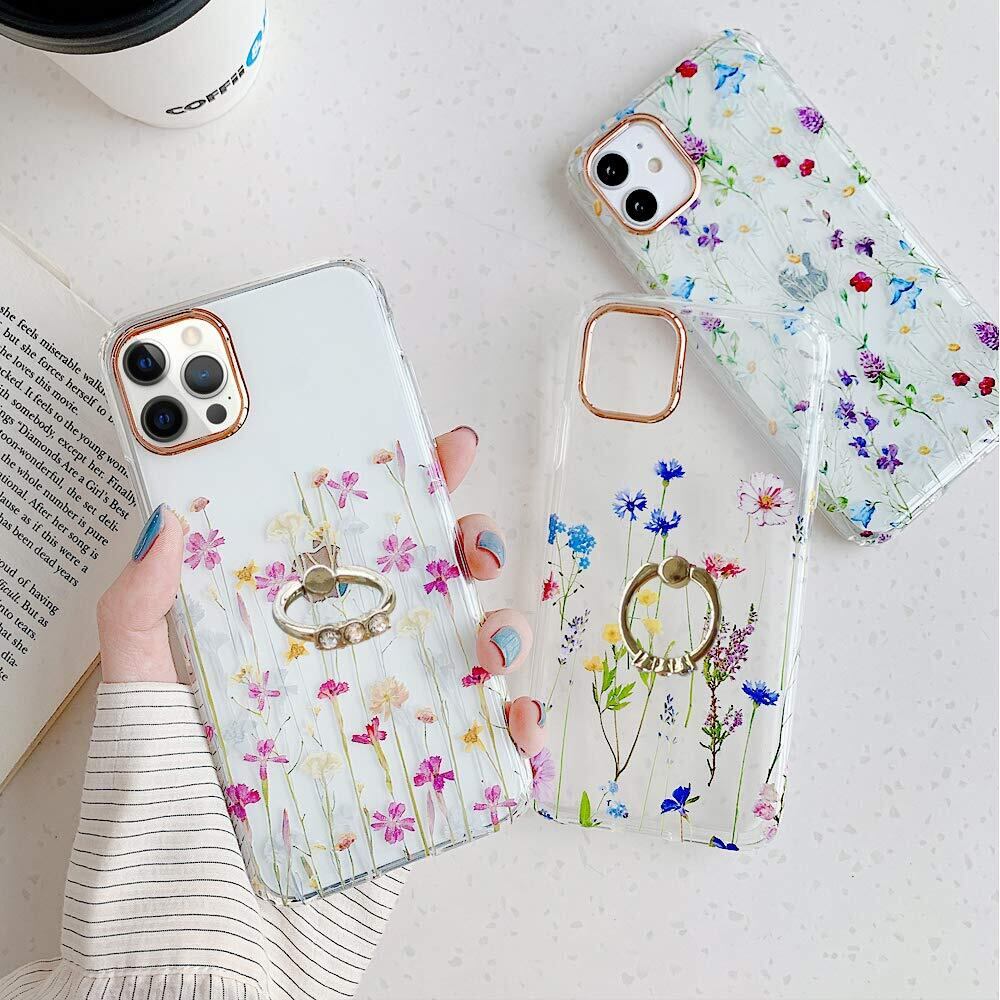 iPhone 用 ケース クリア リング付き かわいい 花柄 ハード PC