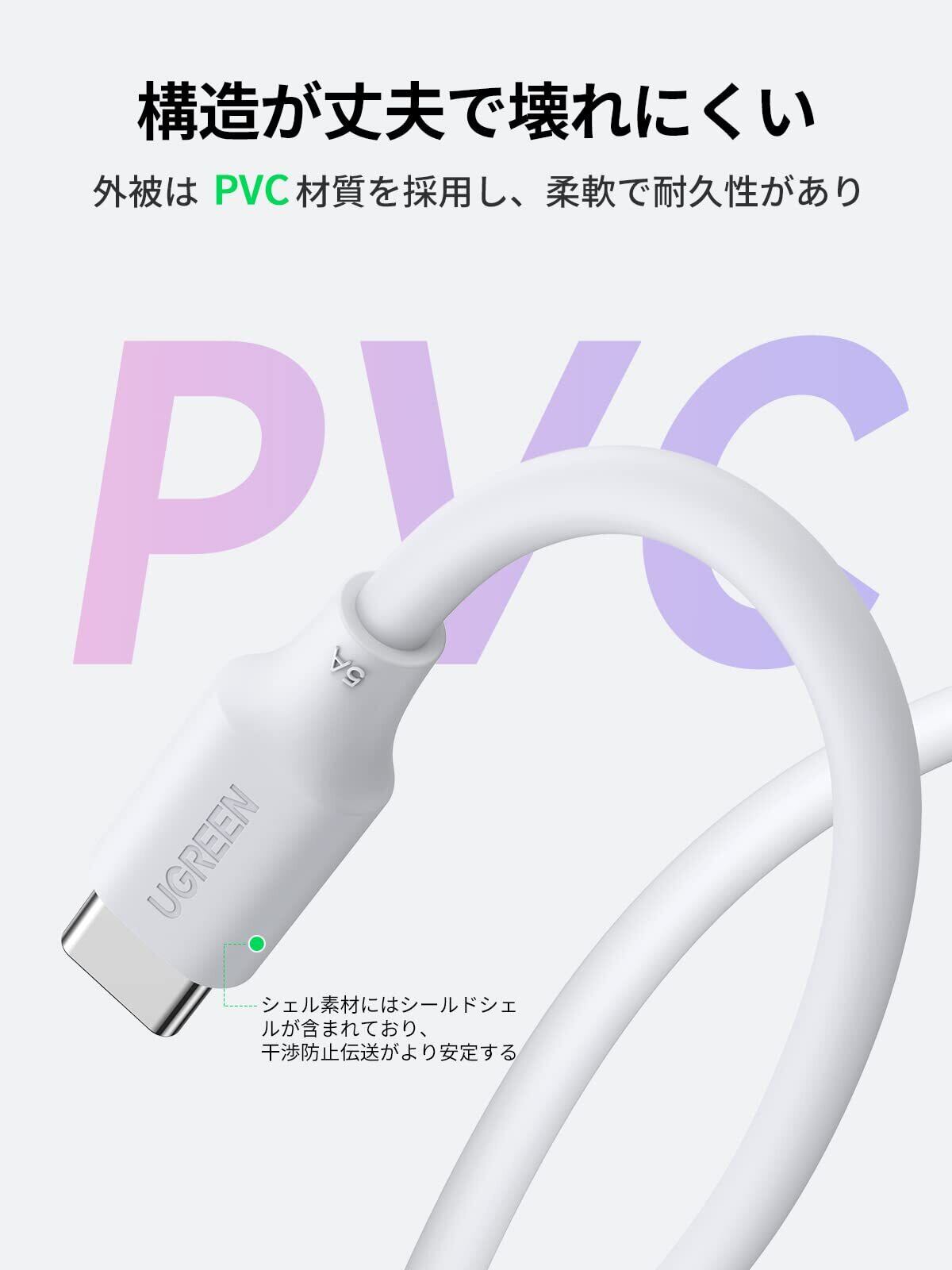 UGREEN USB Type C ケーブル USB C to USB C 【PD 100W/5A 超急速充電】 タイプC ケーブルE-Markerチップ搭載 480Mbpsデータ転送 iPhone15/Galaxy S24/Mac Book/iPad Pro/Xperia等USB C各種対応 ホワイト 1m