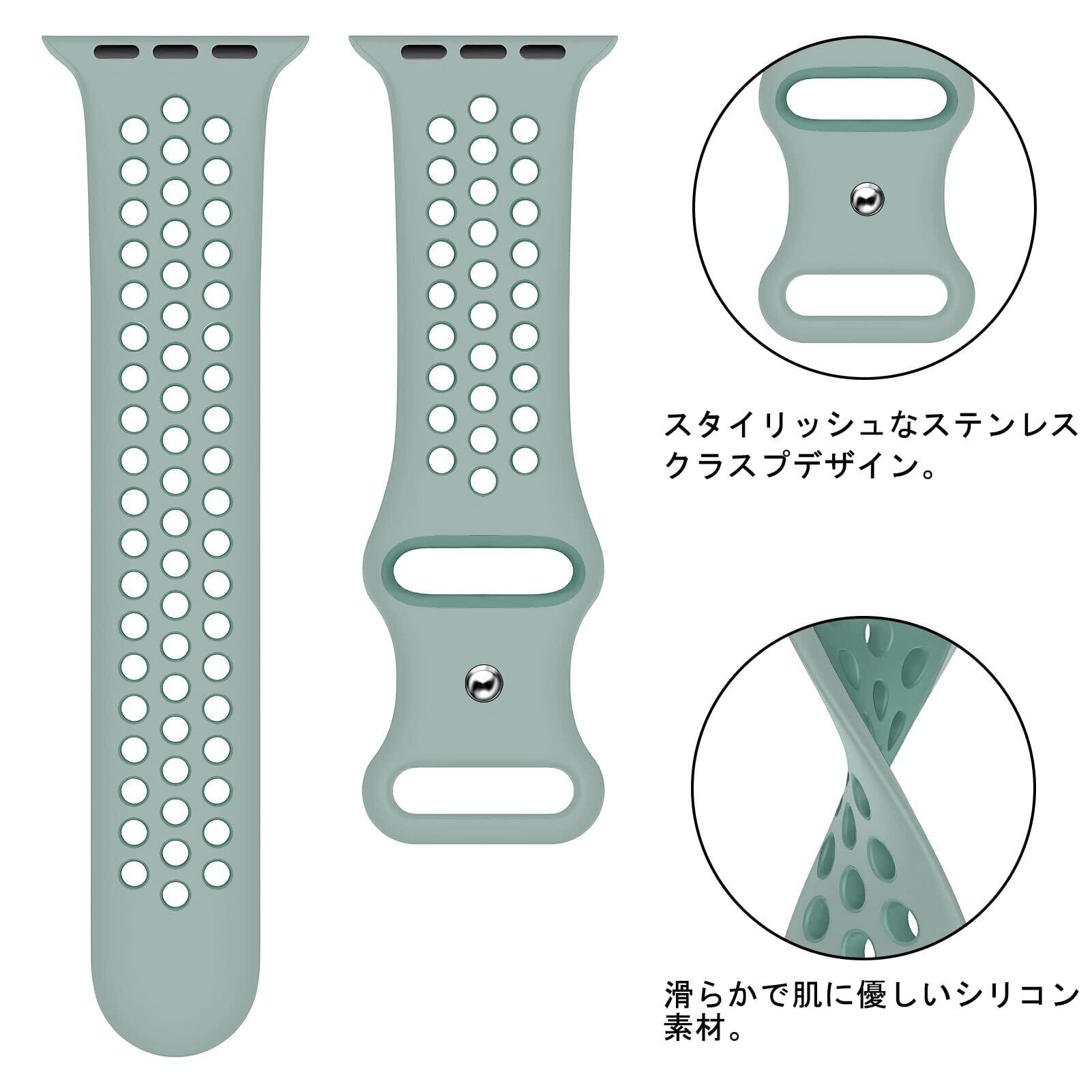 【人気商品】スポーツバンド コンパチブル アップルウォッチ バンド44mm 45mm 42mmレディース/メンズ、通気性、快適、防水、耐久、多空気穴ベルト、コンパチブル Apple watch Ultra2/Ultra 49mm se se2 series 9 8 7 5 6 4 3シリコンスポーツバンド(ライトベージュ-グレーグリーン) | ニコニコSHOP