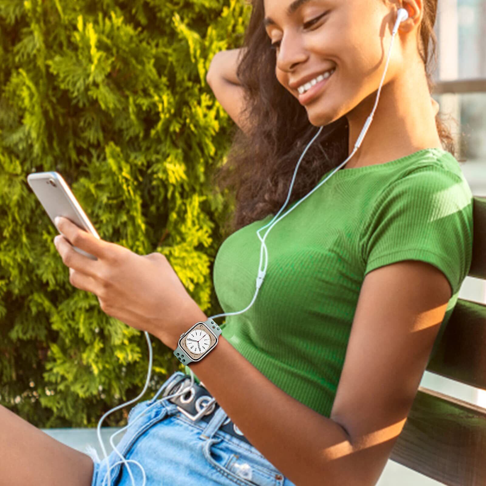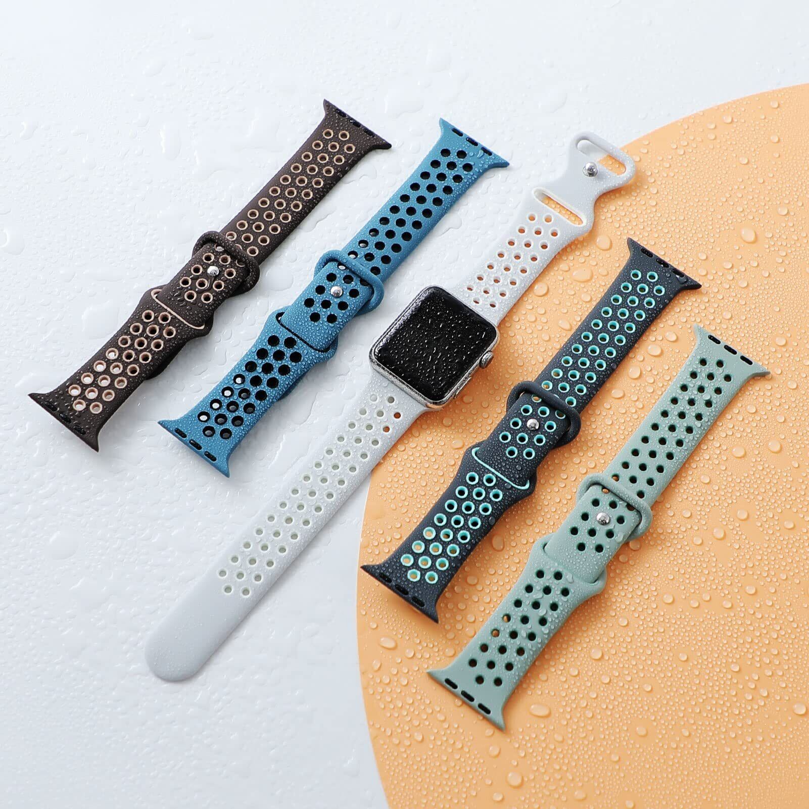 スポーツバンド コンパチブル アップルウォッチ バンド44mm 45mm 42mmレディース/メンズ、通気性、快適、防水、耐久、多空気穴ベルト、コンパチブル Apple watch Ultra2/Ultra 49mm se se2 series 9 8 7 5 6 4 3シリコンスポーツバンド(ライトベージュ-グレーグリーン)