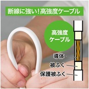 【断線防止!高強度なケーブル】従来仕様の二重被ふくに加え、銅線をより多く、更にねじりを加えた高強度ケーブルを採用。従来の試験基準、耐屈曲5,000回の2倍、耐屈曲10,000回を実現いたしました。断線しづらい構造設計なため、長くご使用いただけます。