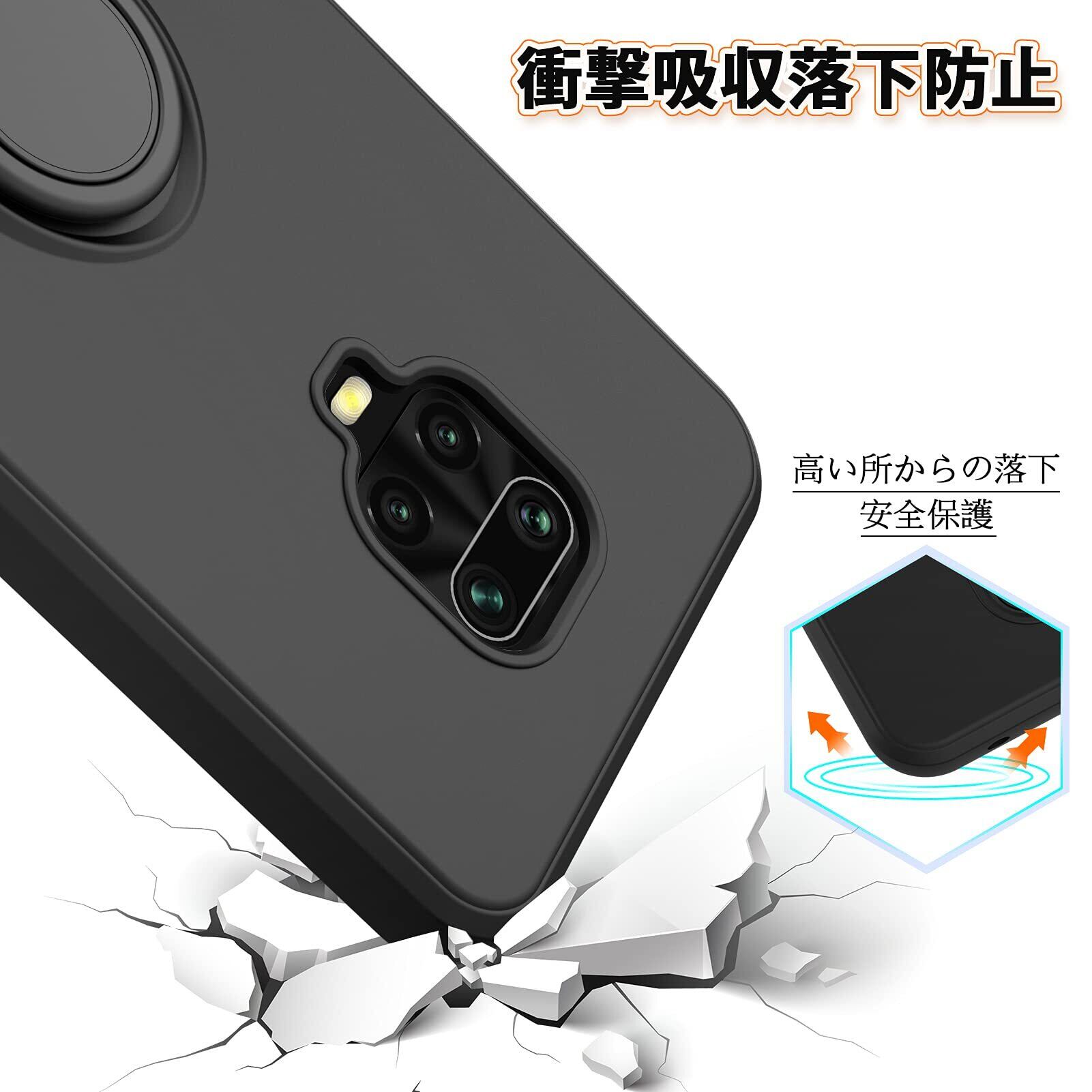 【スタンド機能】:ケースを横置きにするとスタンド機能になり、持たず動画鑑賞などを楽しむことができます。一指着る式で、指がリングに通り抜け、片手で携帯を操作でき、落下防止します。