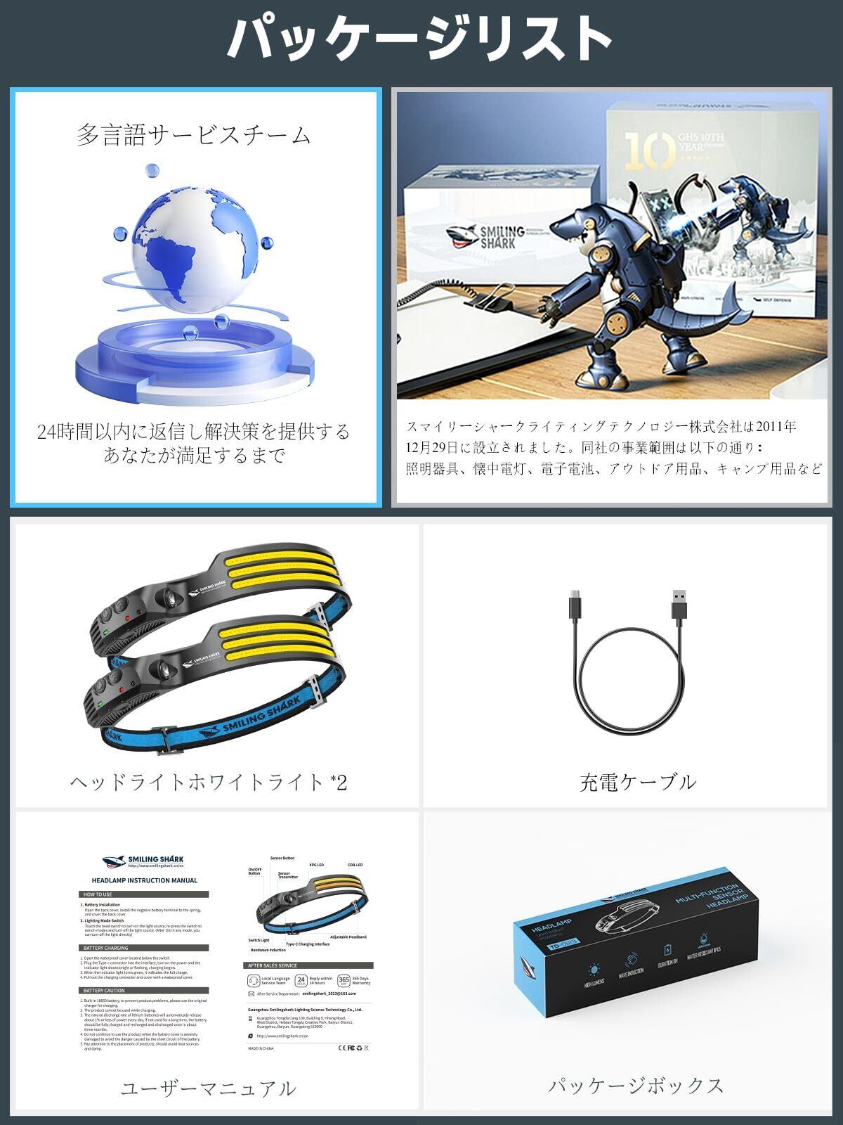 【人気商品】Smiling Shark 充電式 LED ヘッドライト, 【最新款・PSE认证・白光2個セット】 USB充電可能 3 倍高輝度アウトドアヘッドランプ 230°広角照明 集光 超軽量 IPX4 防水防塵 8時間連続使用可能 キャンプ 登山 散歩 釣り 作業 停電用 防災用 最適 | ニコニコSHOP