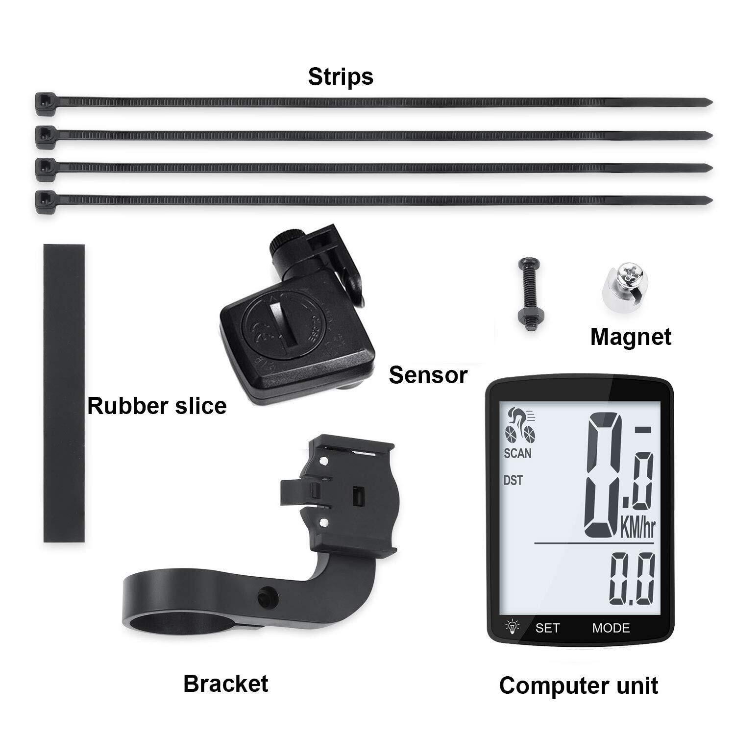 Ewolee サイクルコンピューター 自転車 ワイヤレス サイコン スピードメーター 大画面表示 防水 バックライト付き 走行距離計 走行時間計 気温 消費カロリー 多機能