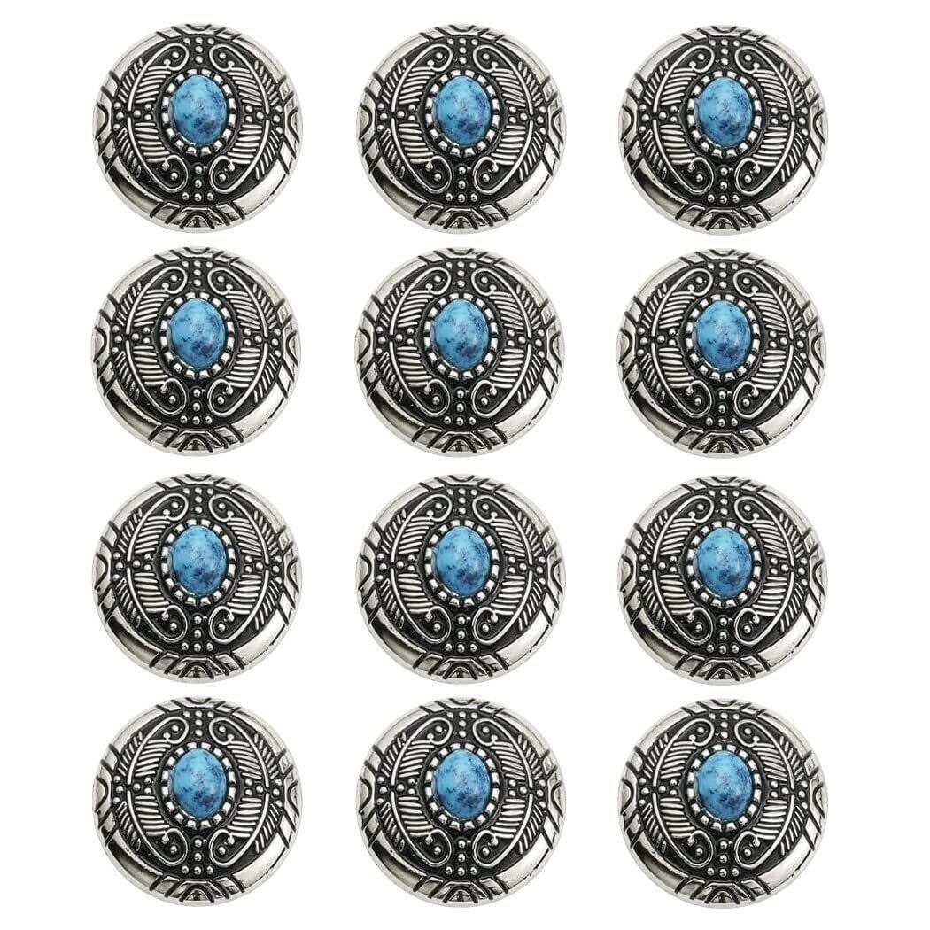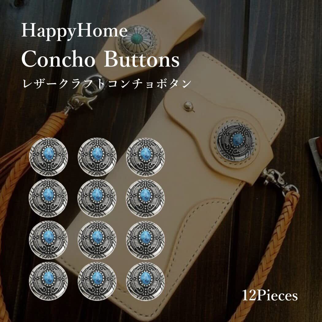 HappyHome コンチョ ボタン 12個セット ターコイズ ネジ式 インディアン フェザー フラワー 30mm レザークラフト 財布 手芸 (Cタイプ)