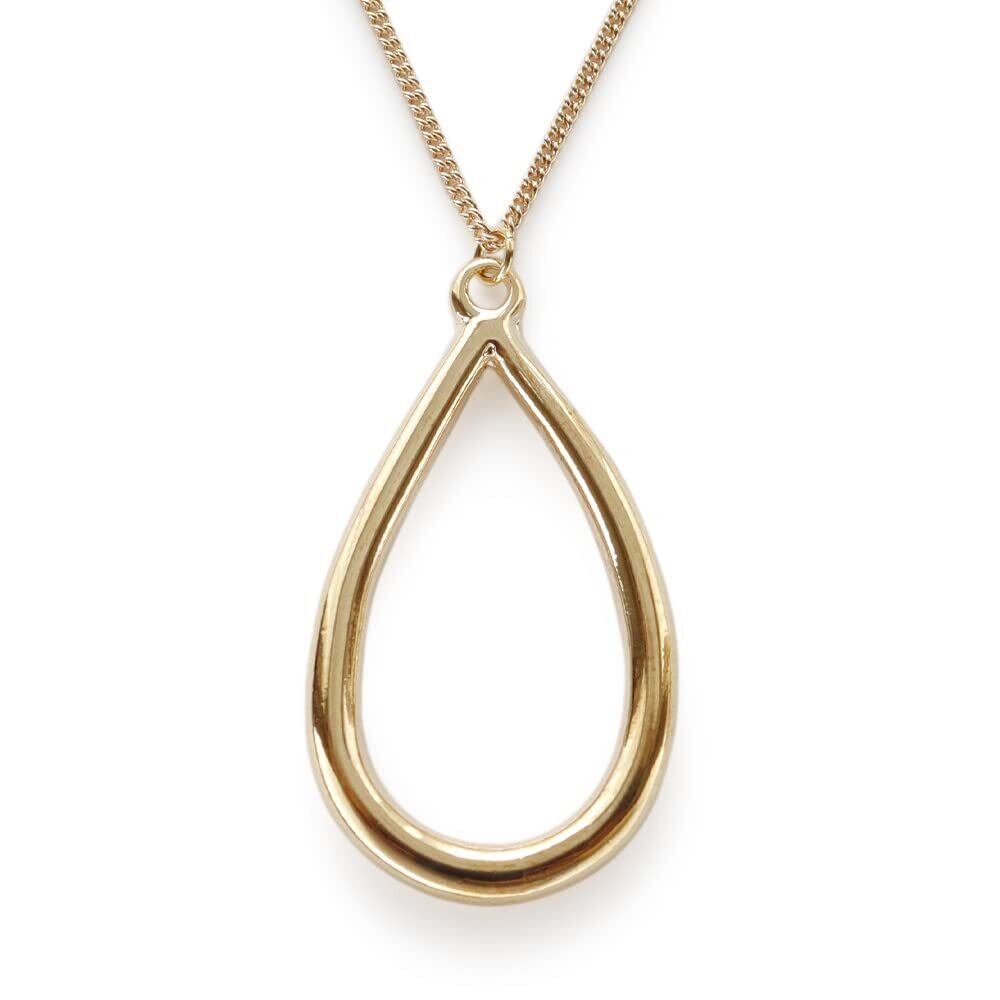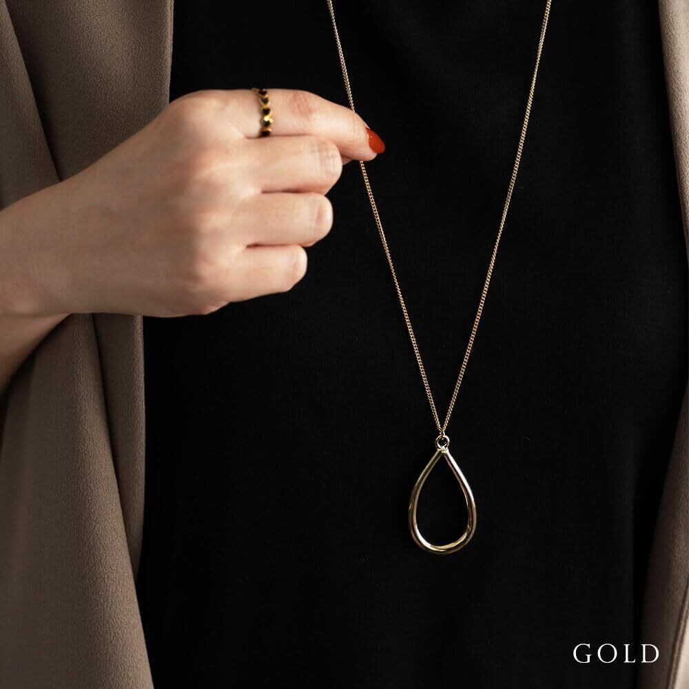 艶やかな光沢感が美しいメタルのドロップ型モチーフのペンダントネックレスです。