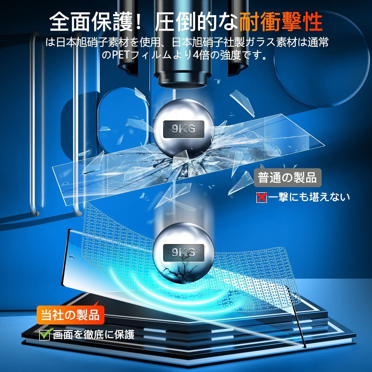 【飛散防止可能の9H硬度】 対応 ギャラクシーS23 Ultra 5G ガラスフィルムとレンズ保護フィルムはすべて旭硝子で作られており、スマホ保護フィルムの中で最高レベルの9H硬度に達しています。手にフィットして持ちやすく滑りにくいので落ちにくいです。万が一落ちてもフィルムが衝撃を吸収してくれるので、スクリーンの損傷を最低限まで抑えられます。また、特殊な飛散防止設計により、ガラスが割れても飛散しないため、安心してお使いいただけます。