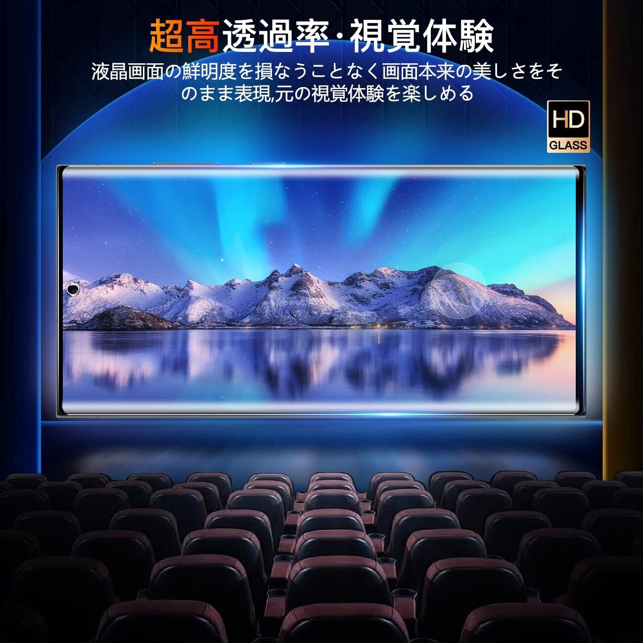 【超高透過率】このスマホ用ガラスフィルムとレンズ保護フィルムの透過率は約99%に達しており、厚さ0.26mmの超極薄フィルムと2.5°の角度なので、高解像度の美しい画像や映像を再現します。
