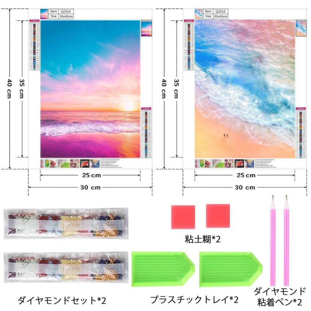サムコス ダイヤモンドアート キット ダイヤモンドの絵画 2個セット きれい 全面貼り付け ダイヤモンドアート 塗装 初心者 大人の子供 DIY 手芸キット 芸術品 家の壁の装飾(海辺2)