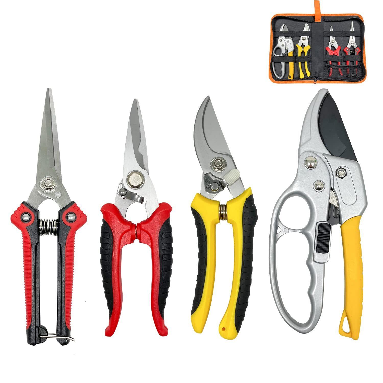 【新春セール】Sutekus 園芸用はさみ 4点セット 剪定鋏 ロック機能付き 剪定ハサミ 庭木/枝切り/果樹/盆栽剪定/庭園作業 太い枝を簡単に切る 耐久性 軽量 剪定ばさみセット 収納ケース付き | ニコニコSHOP