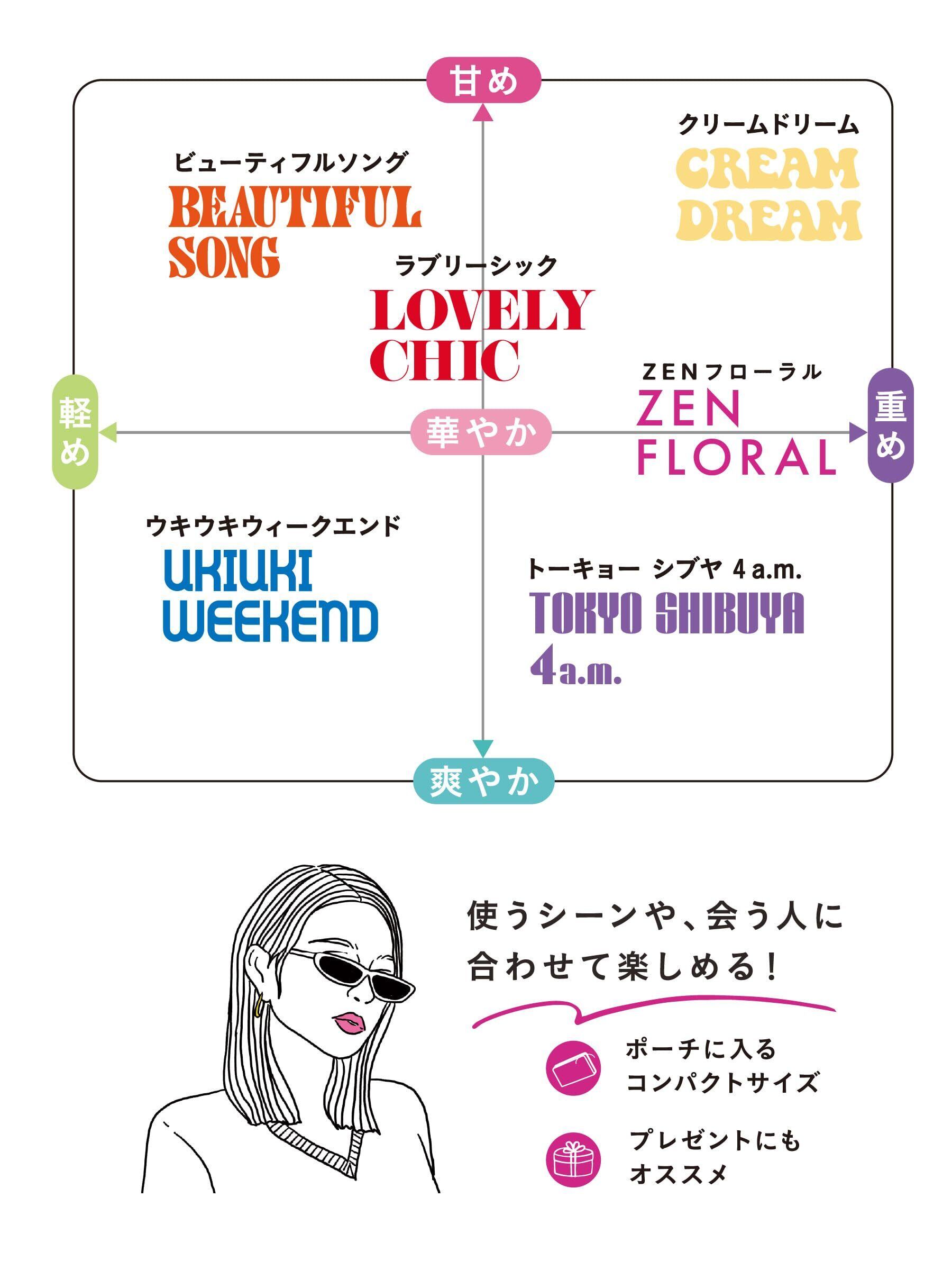 手首や首筋に付けるのはもちろん、髪やネイルの保湿ケアとしてもお使いいただけます。
