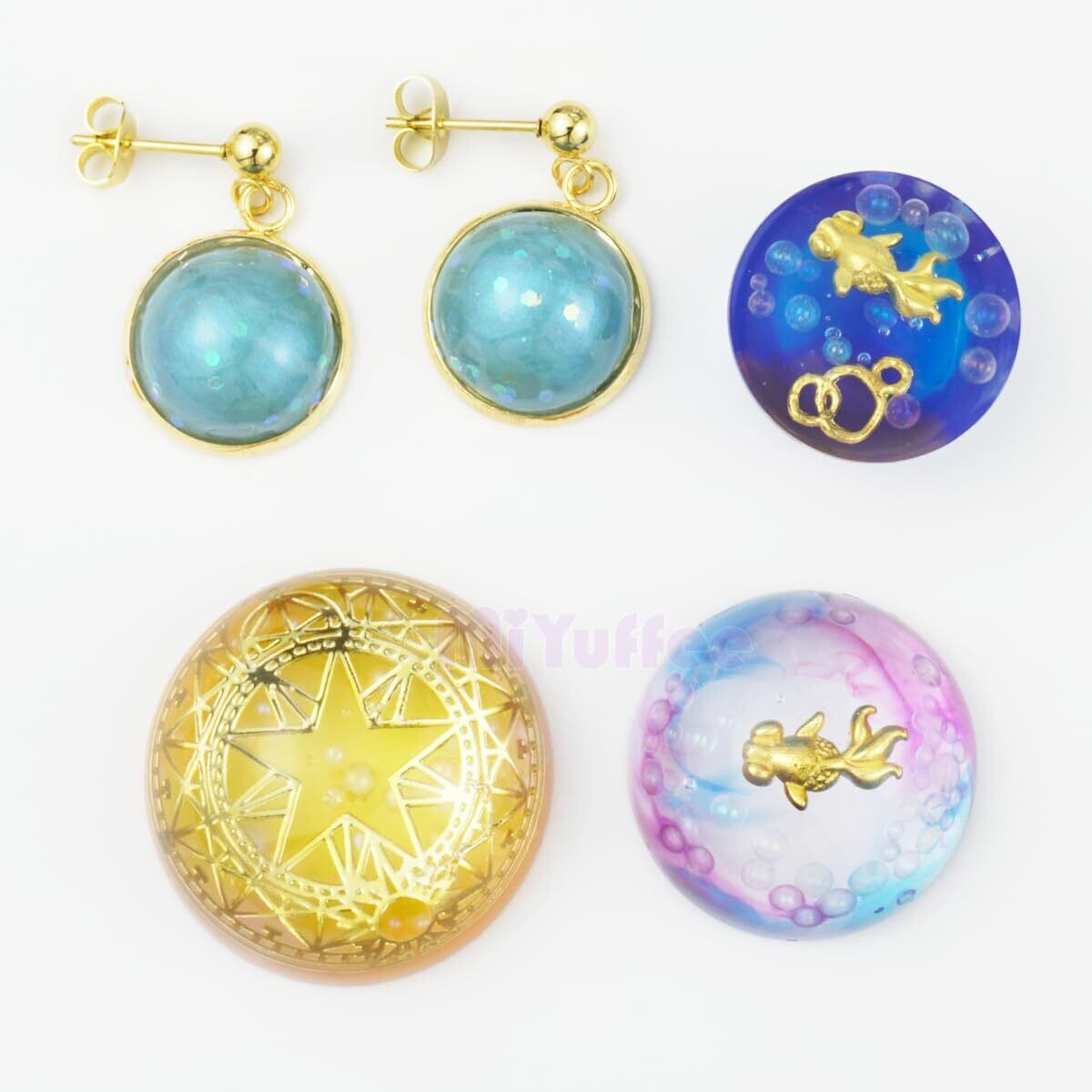 4個のシリコンモールドで大きいパーツも小さいのも作れます。宇宙モチーフに最適な球体・星月、可愛いハート型、氷に見えるキューブ、色々なオリジナルの作品を製作することができます。ネックレスのペンダント・ヘアゴム・ピアス・ストラップなど様々なアクセサリーのレジンチャームに最適です。