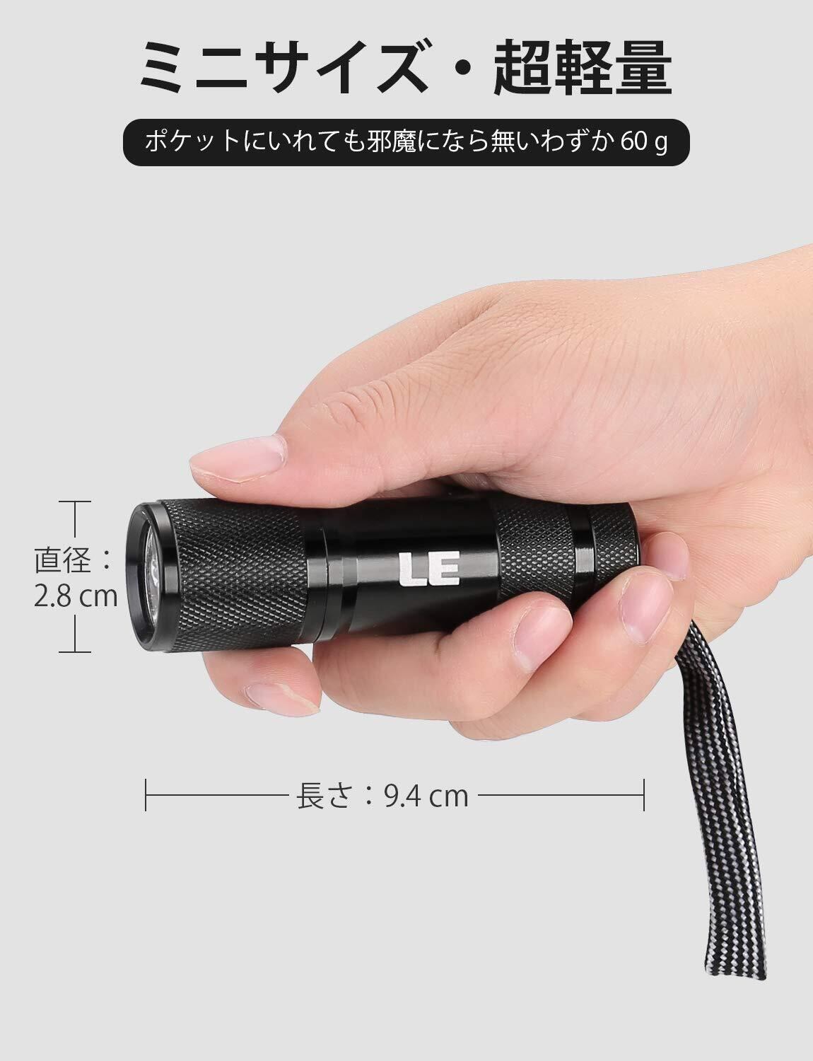 Lepro ブラックライト led uvライト 紫外線ライト UVライト レジン用 硬化ライト 紫外線 ライト IPX4防水 アルミ製 高耐久 ハンディ ブラック ライト uvレジン 懐中電灯 単4形電池付属 ペットのオシッコ汚れ対策に 62g超軽量 uvライト 釣り (ブラック)