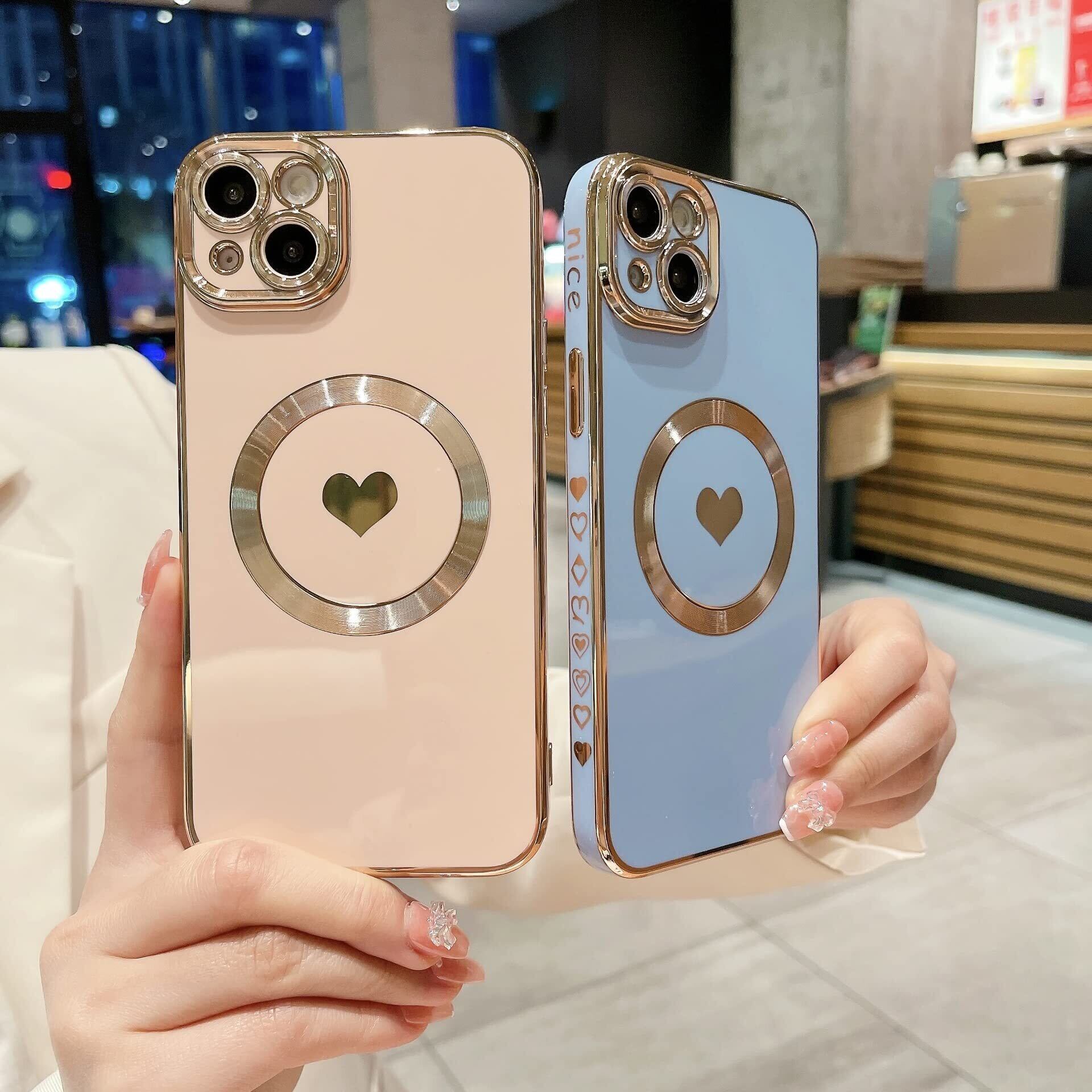 【特価セール】UEEBAI ケース 対応 iPhone XR 用の ケース ラブハート ケース ラグジュアリー メッキ ケース 電気メッキフレーム電話ケース ソフトシリコンケース Qi ワイヤレス充電対応 MagSafe対応 マグネット搭載 軽量 磁気吸着 薄型 耐衝撃ケース 全面保護携带カバー 人気ケース - ピンク | ニコニコSHOP