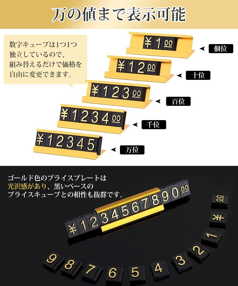 【在庫セール】サムコス プライスカード プライスキューブ 35個セット 専用スタンド付き キューブ プライス台 セット プレート 値札 価格表示 見やすい 万の値まで表示可能 (ゴールド) | ニコニコSHOP