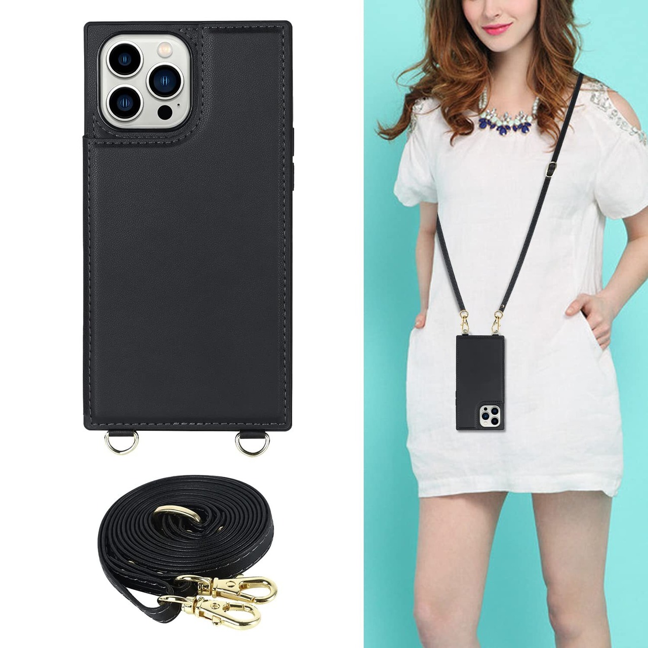 【縄掛けストラップ付き】クロスボディチェーン&リストストラップ:調節可能ショルダーストラップ、可斜めがけ、可肩掛け。携帯電話が紛失する恐れはなし、ハンドバッグを持たずにどこでも旅行の贅沢さを満喫できます。ケースだけが必要な場合、ストラップは取り外し可能です。