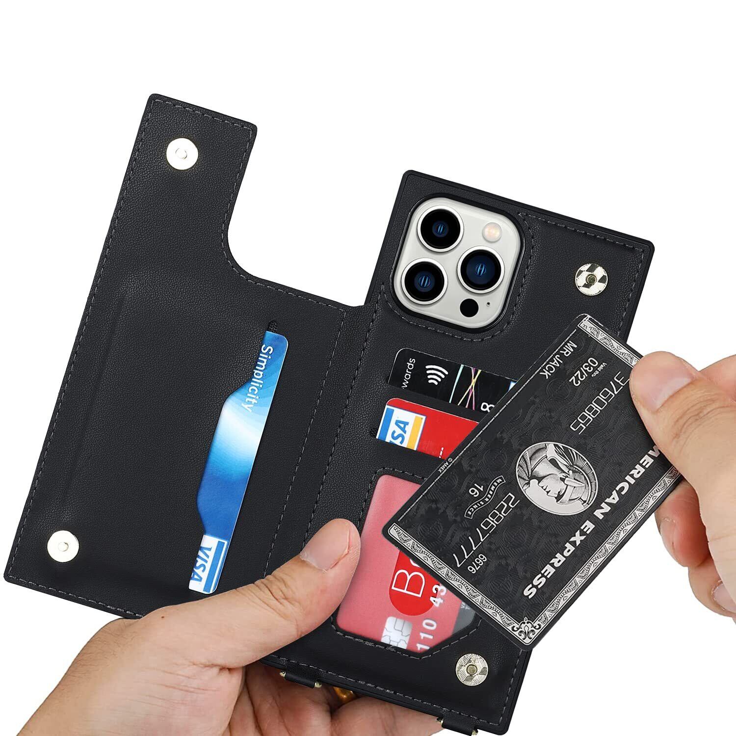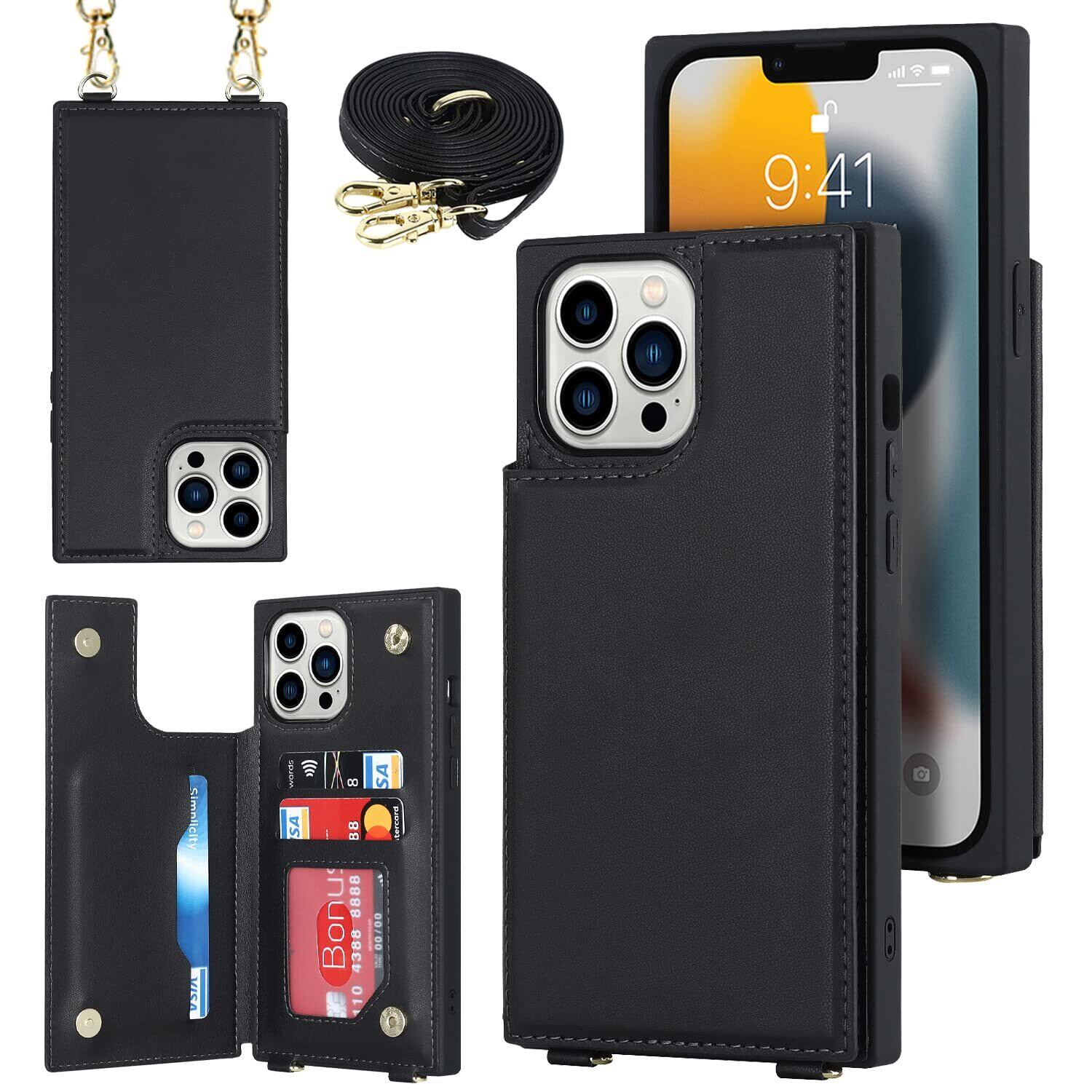 Pelanty 携帯カバー For iPhone 13 Pro ケース手帳型 iPhone13 pro 背面ケース アイフォン13pro ケース縄掛け 肩掛け斜めがけショルダー ストラップ付き PUレザー+TPU 財布型IC カード収納 薄型軽量 スタンド機能 ボタン磁気 多機能 耐衝撃 ブラック