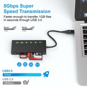 USB 3.0 5Gbps高速読み書き:USB3.0スーパースピード/5Gbpsに対応、USB2.0規格の約10倍の転送速度を実現するUSB3.0規格に対応したSD/TF/CF/MS/XD カードリーダーです。高解像度の写真やHD動画はPCやノートパソコンに短時間で転送できます。5スロット同時に書き込みや読み込み可能です。USB 3.0カードリーダー の各カードスロットには、作業状態を示す個別のLEDがあります。 各個別のLEDインジケータは動作状態を示し、接続中は点灯し、データ転送中は連続的に点滅しています。