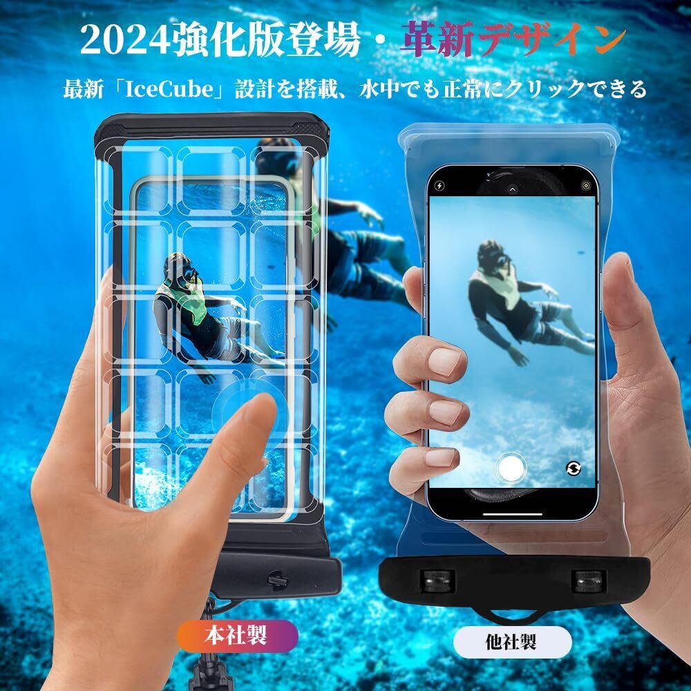 ❀【2024強化版登場!水中タッチ】従来品と違って弊社の携帯防水ケースは最新改良デザインを採用し操作感&透明度&触感がアップ!どこにいても簡単に操作できるための両面の革新的なデザイン。さらに最新「IceCube」設計を搭載。「水中ではスクリンにタッチできません」という問題を解決し、水中でも正常にクリックして写真を撮って、録画して自分の冒険経験を記録できる。※普段使うときは、より良い体験のため、平滑な面をお勧めします。※水中使うときは、より良い体験のため、凹凸の面をお勧めします。