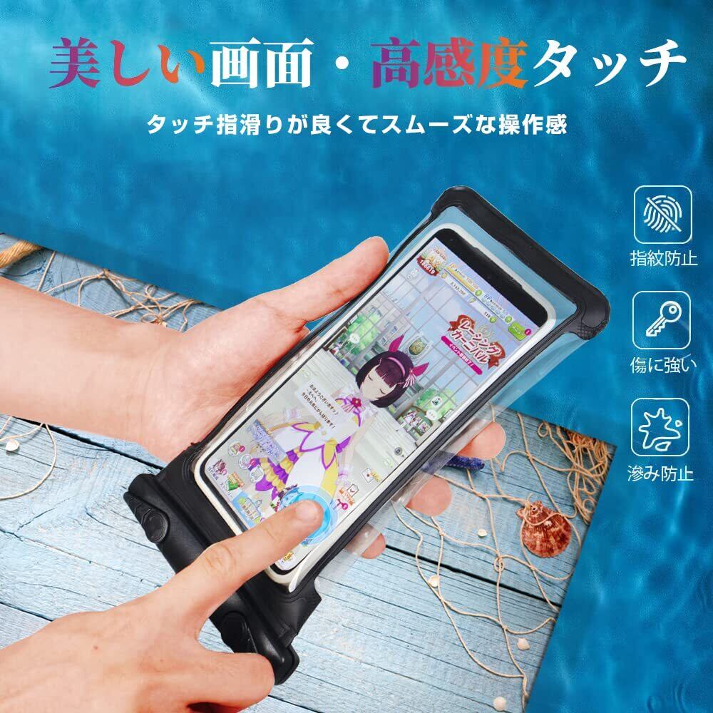 防水ケース スマホ 防水バック【2024強化版&両面高機能】アイホン 水中撮影 完全防水 IPX8認定 SGS国際認証 すまほ ぼうすいケース 保護密封 スマホ防水ケース スマホ保護 防水携帯ケース 全面クリア 防水スマホカバー 透明 タッチ快適 最大6.9インチ対応 スマホ 通話 小物管理 風呂 海 プール 釣り 雨 潜水 水泳 雪 温泉など適用 (ブラック)