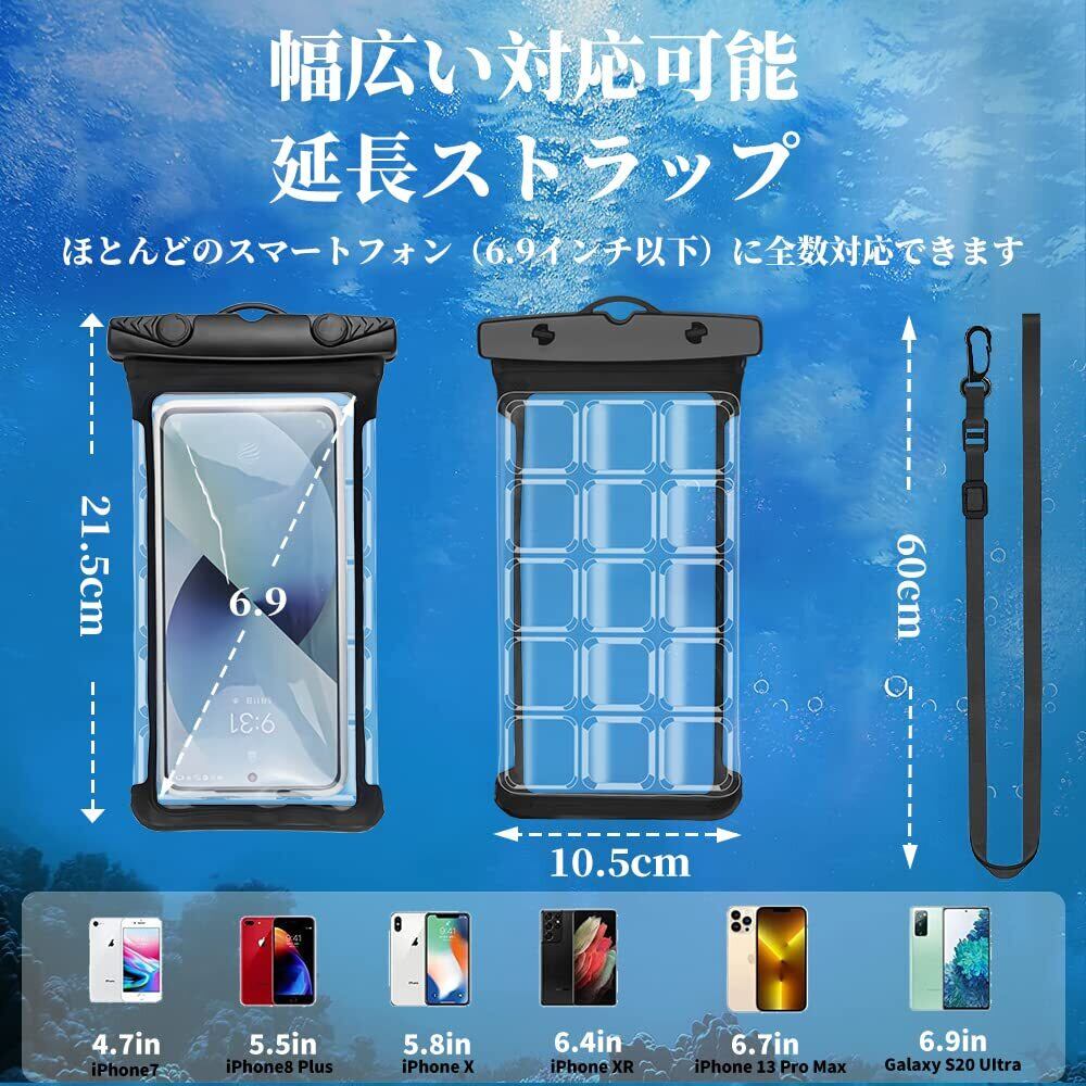 ❀【様々な場面で役たつ!6.9インチ以内】スマホを防水ケースに置いても、鮮明な写真やタッチ操作、通話ができるので、スマホを便利に使えます。雨日、ビーチ、温泉など場合ではスマホを防水カバーに収納したままで写真や撮影を気楽に遊んで楽しめます。いつでもどこでも綺麗な思いでの瞬間をシャッターを押せば逃がせない楽です。スマホに使う以外は、鍵、カード、現金などを保存できます。6.9インチの大きなサイズで、幅広い機種対応できる。iPhone全機種15、15Pro、15proMax、15plus、14、14Pro、14proMax、14plus、13、13Pro、13proMax、13mini、12ProMax、12、12Pro、SE、11、8、7、7Plus、8Plus...に全数対応。Galaxy、Xperia、Aquos、ZenFone、HUAWEIなどのAndroid機種も6.9インチ以下のスマホに全数対応。