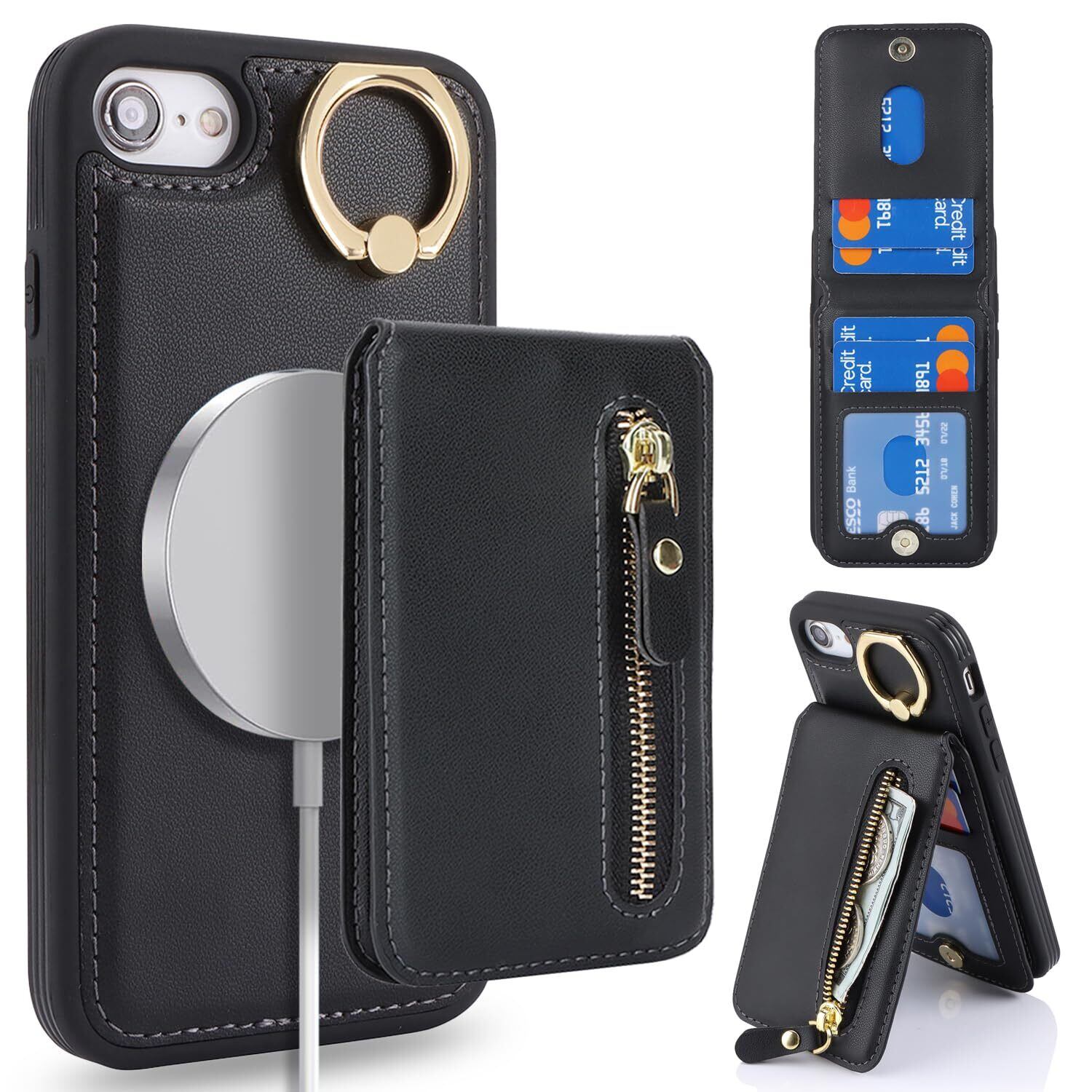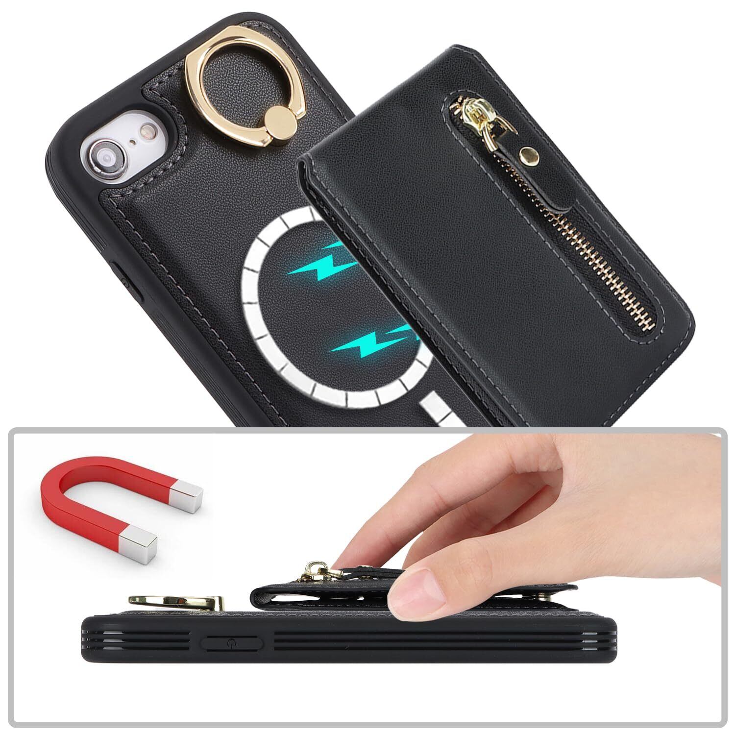 【特価セール】iPhone7 iPhone8 iPhoneSE 第2世代 iPhoneSE 第3世代 通用ケース 分離可 カードケース リング付きケース magsafe対応ケース マグセーフ アイホン7 リング付き iPhone8 カバー スマホケース アイフォンSE2 SE3 case 適用 iCoverCase リング カード収納 スナップ 横置き スタンド マグネット ファスナー 携帯カバー ブラック | ニコニコSHOP