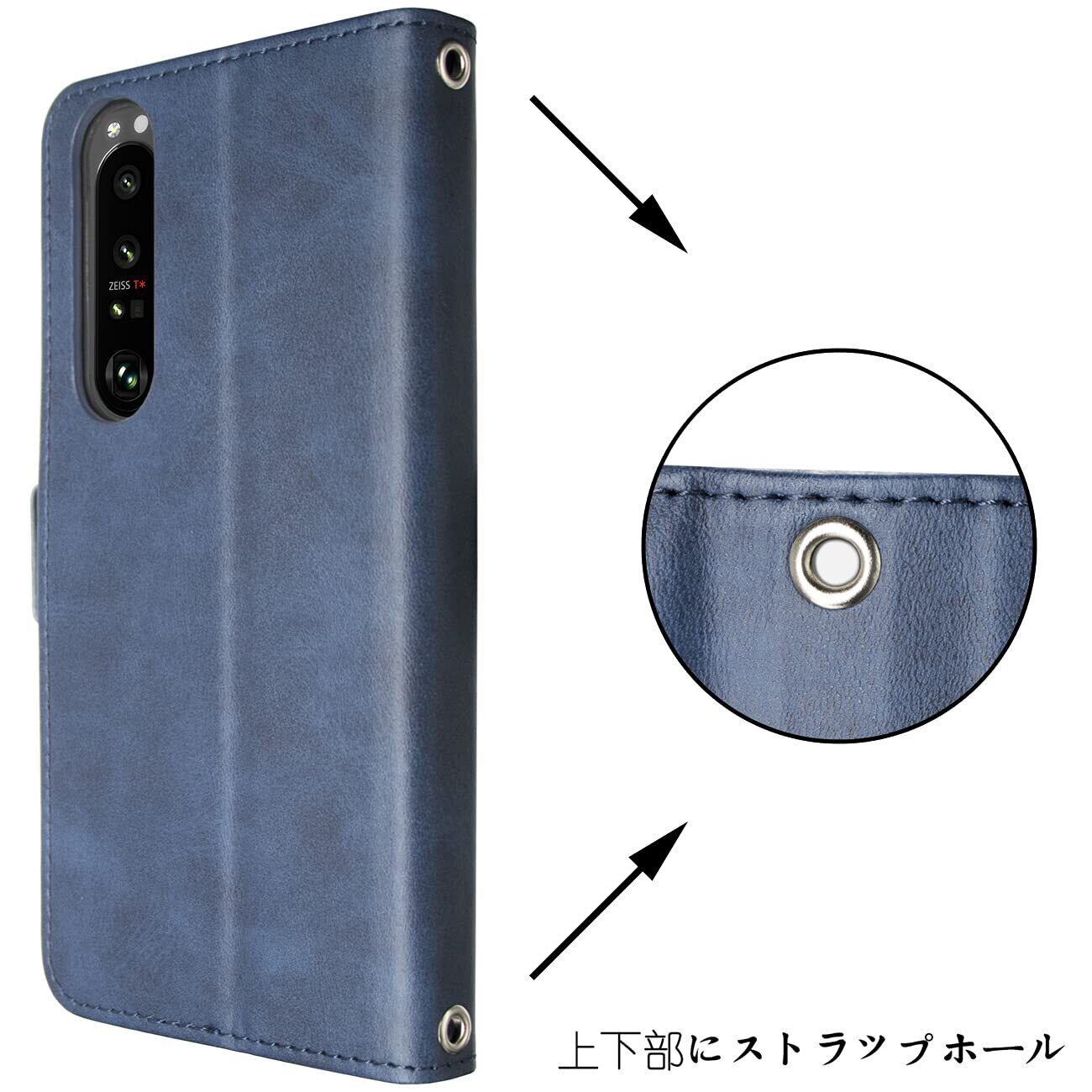Xperia 1 III ケース 手帳型 SO-51B SOG03 対応 カード 収納 エクスペリア 1 iii 財布 カバー (Xperia 1 III, ブルー)