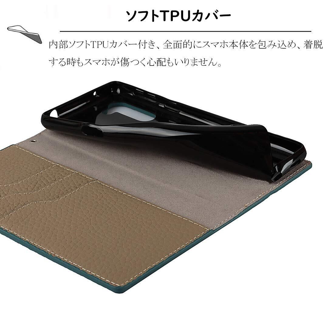 Elick シンプルスマホ5 ケース 手帳型 高級牛革 SoftBank シンプルスマホ5 A001SH ケース 手帳型 カバー 本革 マグネット式 スタンド機能 カード収納 ストラップ付き ターコイズ