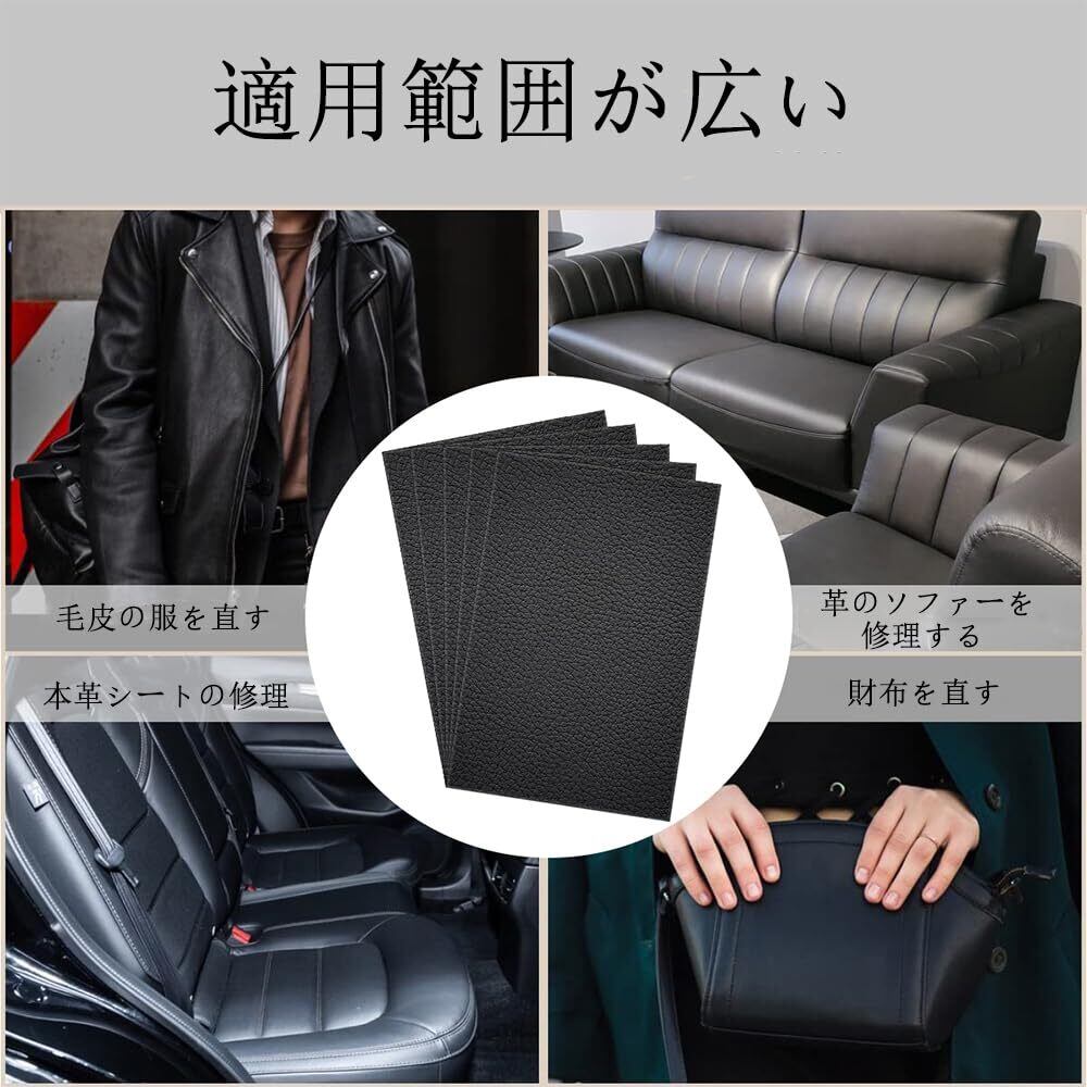 LIKENNY レザー補修シート 粘着シート 10cm*20cm 5枚セット 革 家具 ソファ 椅子 補修 合皮 PUレザー 生地 DIY 手芸 (ブラック)