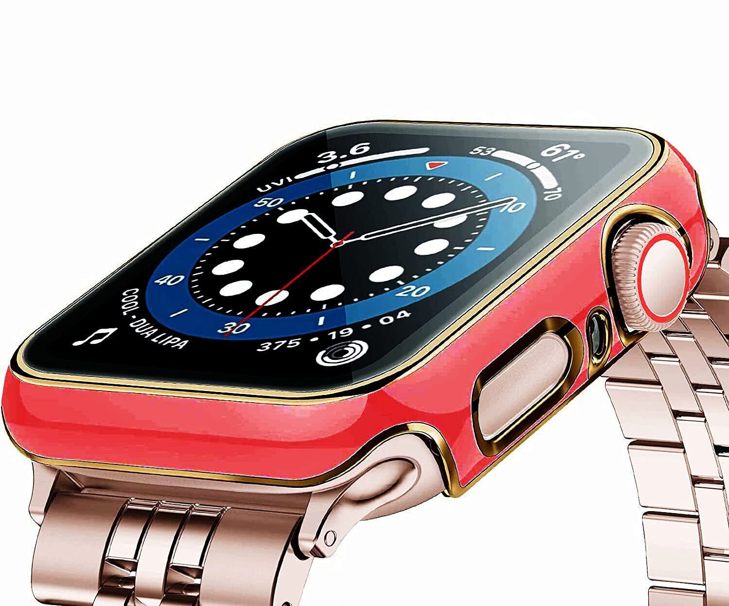 【特価商品】アップルウォッチカバー ケース 38mm 40mm 41mm 42mm 44mm 45mm apple watch用 ガラスフィルム 一体型, Series 9 8 7 SE 6 5 4 3 2 全シリーズに適用 全面保護 ダイヤモンド付けとメッキゴールド襟二つ流行タイプ