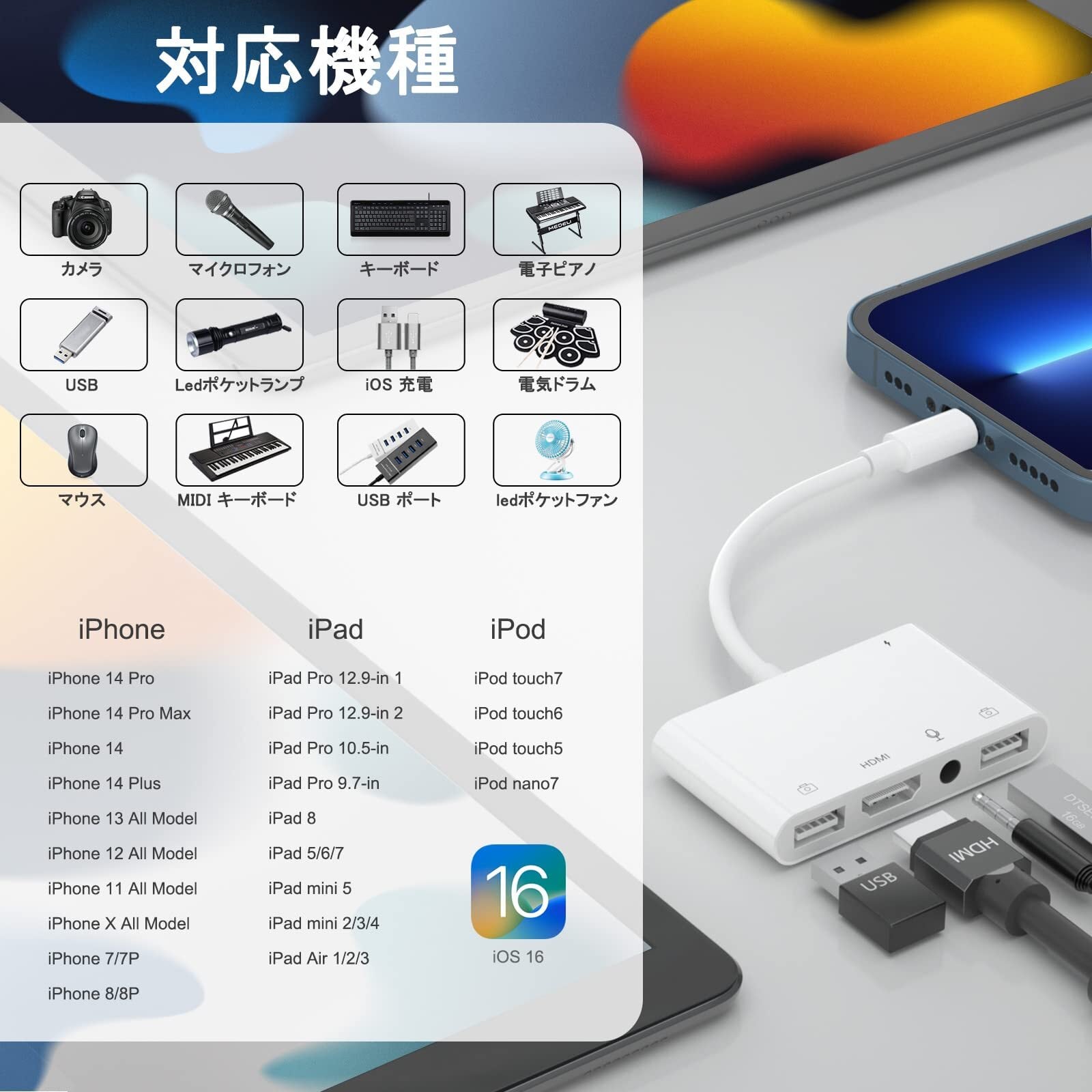 【互換性】最新のiOS 17に対応、iOS10以降のデバイス適用します。Lightn-ing HDMI 変換ケーブルは、Lightn-ingコネクタを持つi-Pad Retinaディスプレイモデル、Phone 14/14 Pro/14Plus/14 Pro Max/13/13 mini/13 Pro/ 13Pro Max/12 mini/12/12 Pro/ 12 Pro Max/11/11 pro/11 Pro MAX /XS/XSNAX/XR/8/8 Plus/7/7 Plus/6S/6S Plus/5 /SE、i-Pad mini/ i-Pad Air/ i-Pad Pro/ i-Pad Touchなど。
