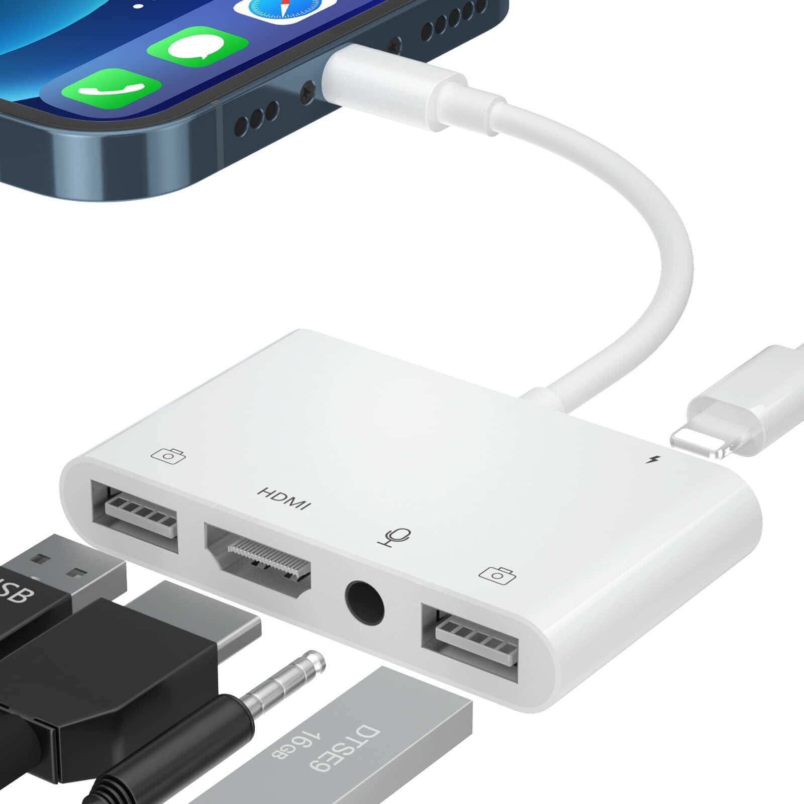 phone hdmi変換ケーブル Lightn-ing to HDMI+USB*2+3.5MM 変換アダプタ HD1080P ライト-ニング Digital AVアダプタ USB OTGカメラアダプタ 双方向 写真/ビデオ高速転送 3.5 mmヘッドフォンジャックアダプタ iPhone/iPad専用(iOS対応)
