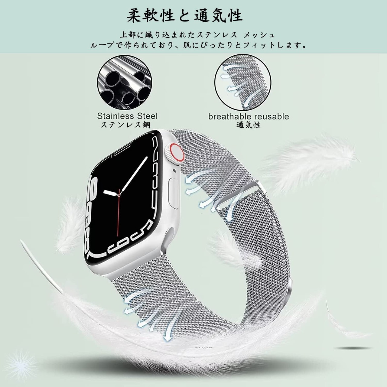【優れた防水性&通気性】高品質のステンレス鋼で構成したアップルウォッチバンド、さまざまな複雑なプロセスを経て最終的に研磨されて、安定したメッシュ構造になります。 メッシュタイプなアップルウォッチバンドは柔らかくて軽量で、衛生的で錆びにくい、耐久性があり、通気性や防水性も優れて快適です。