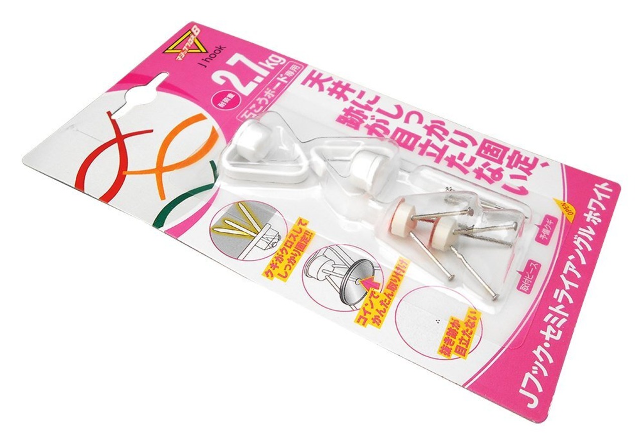 【新着商品】日軽産業 フック マジッククロス8 J hook セミトライアングル ホワイト MJ-020W 奥行1×高さ2×幅1.7cm キャップ2個、取付ピース2個、予備クギ9本 2入 | ニコニコSHOP