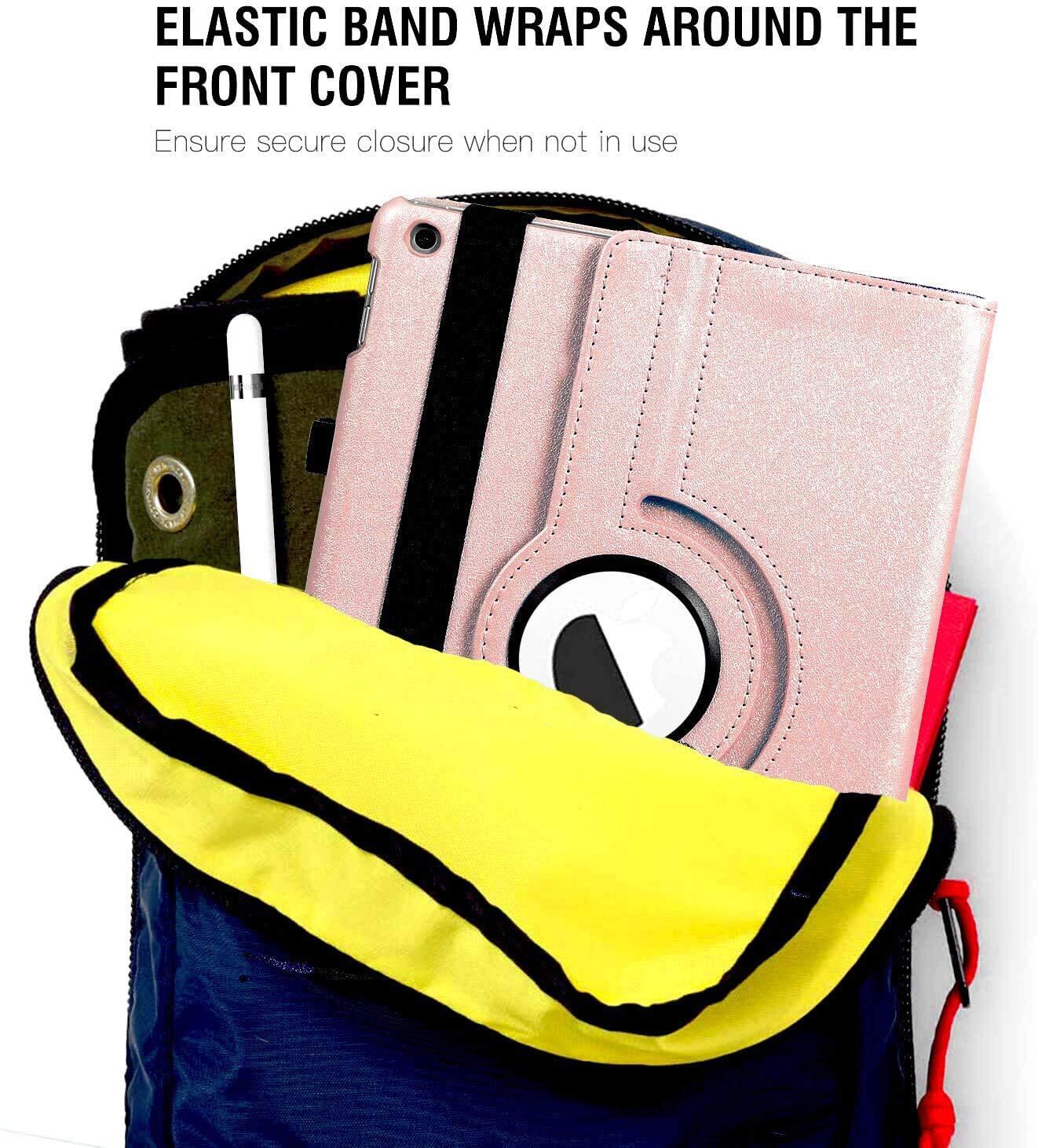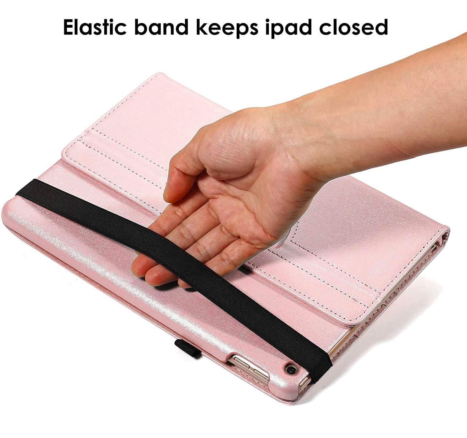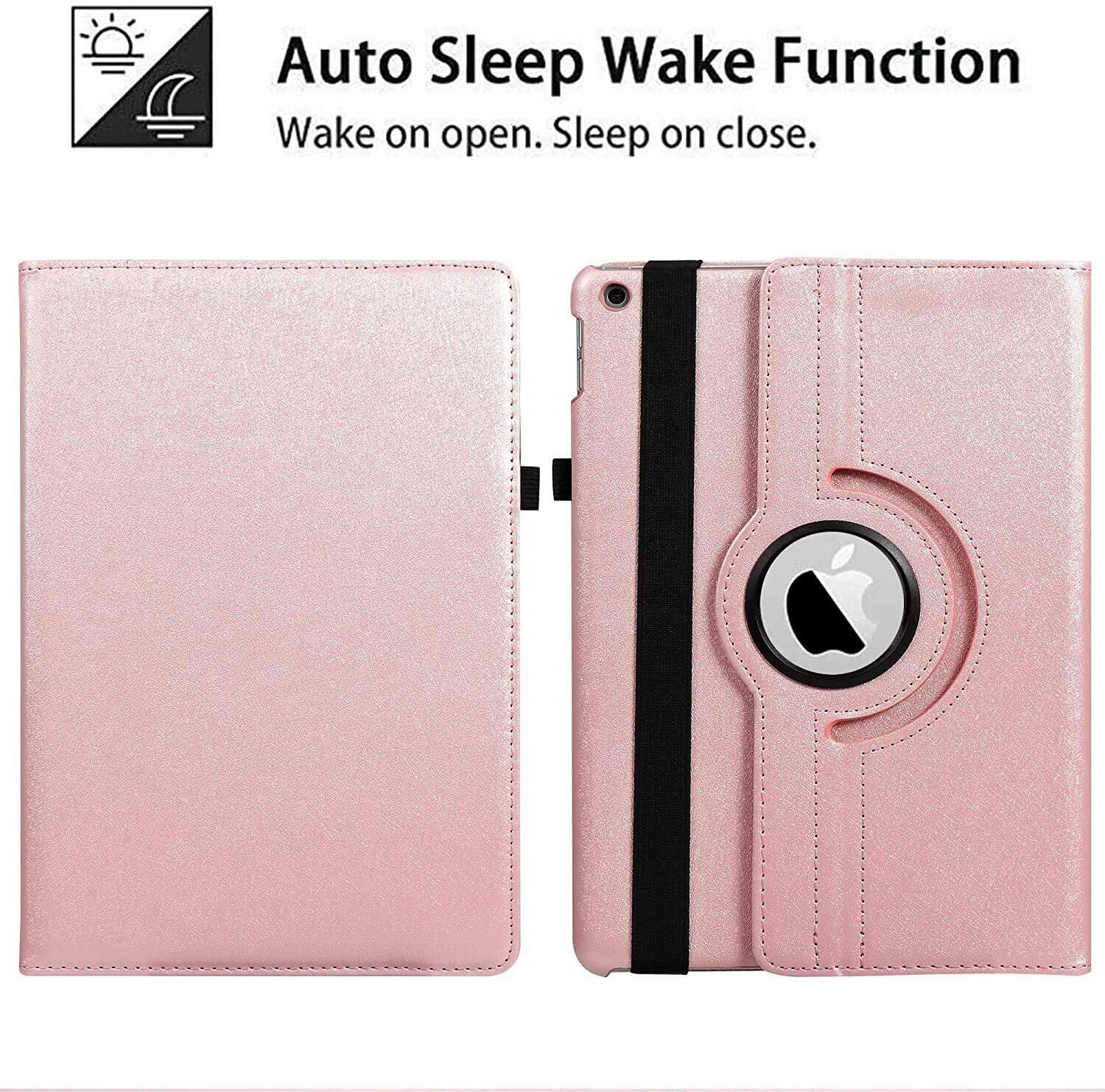 iPad Airケース iPad 9.7 2018/2017新型(Newモデル)/iPad Air/iPad Air2カバー 軽量 360度回転式 手帳型タブレットケース 2018/2017 iPad 9.7インチケース 衝撃吸収 PUレザーカバー 3段式 スタンド機能付き(ローズゴールド)