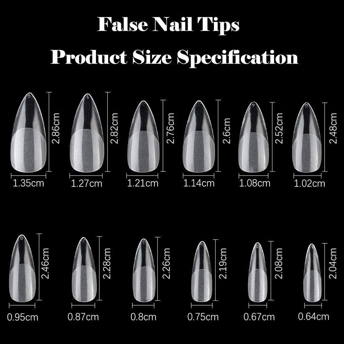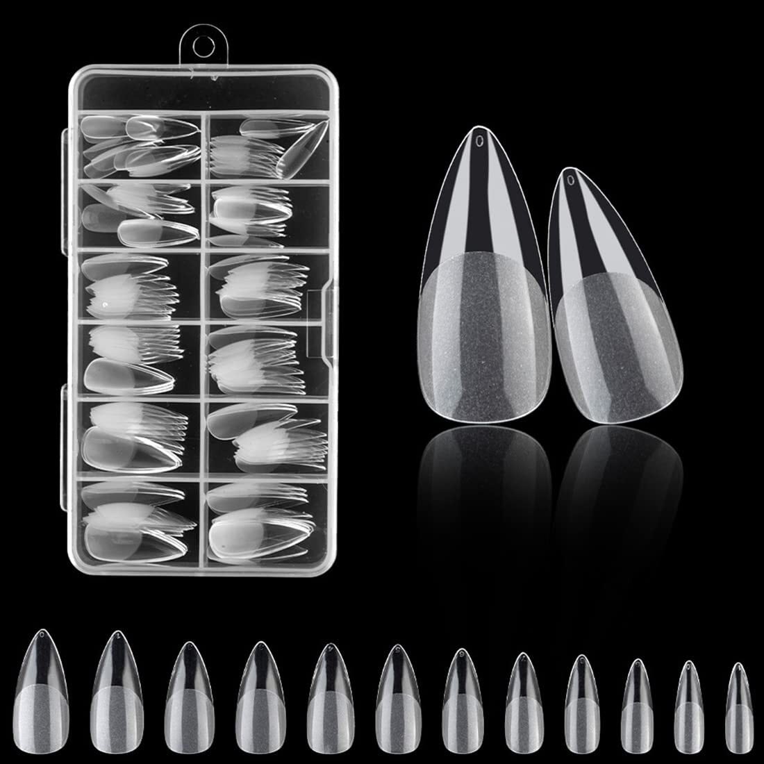 【2022最新】120ピースクリアハーフフロストネイルチップアーモンドアクリルフェイクネイルフルカバーフェイクネイルミディアムスティレット12サイズネイルサロンとホーム用