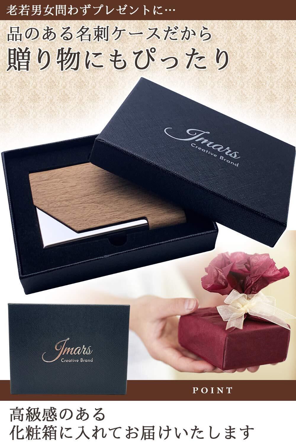[JMARS] 名刺入れ カードケース【取り出しスムーズ仕様】 名刺が折れない 薄型 名刺ケース 25枚対応 男女兼用 (木柄アプリコット)