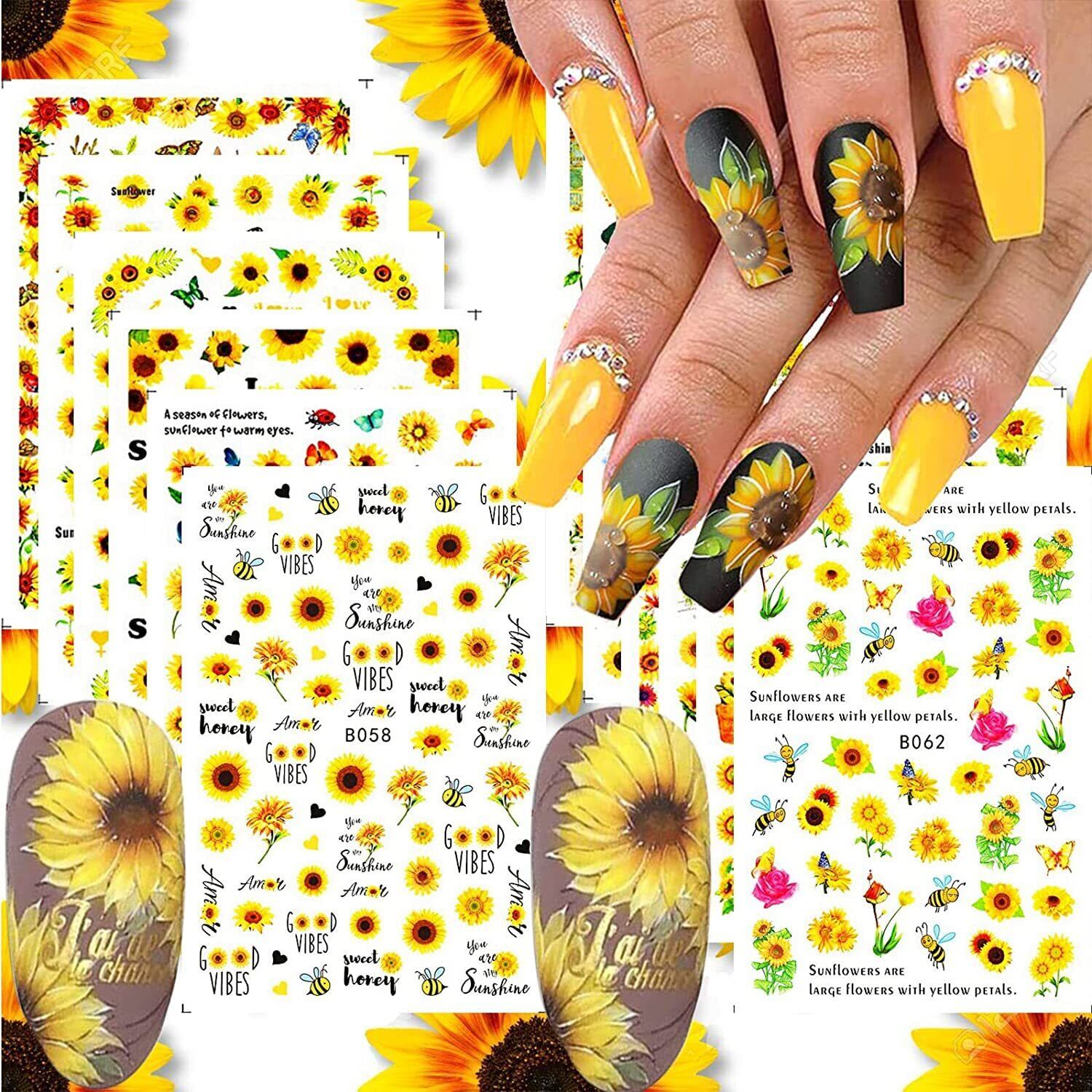 LANODO 12枚 ネイルシール 3D 複数のスタイル ひまわり DIY ネイルシールセット 綺麗です 植物