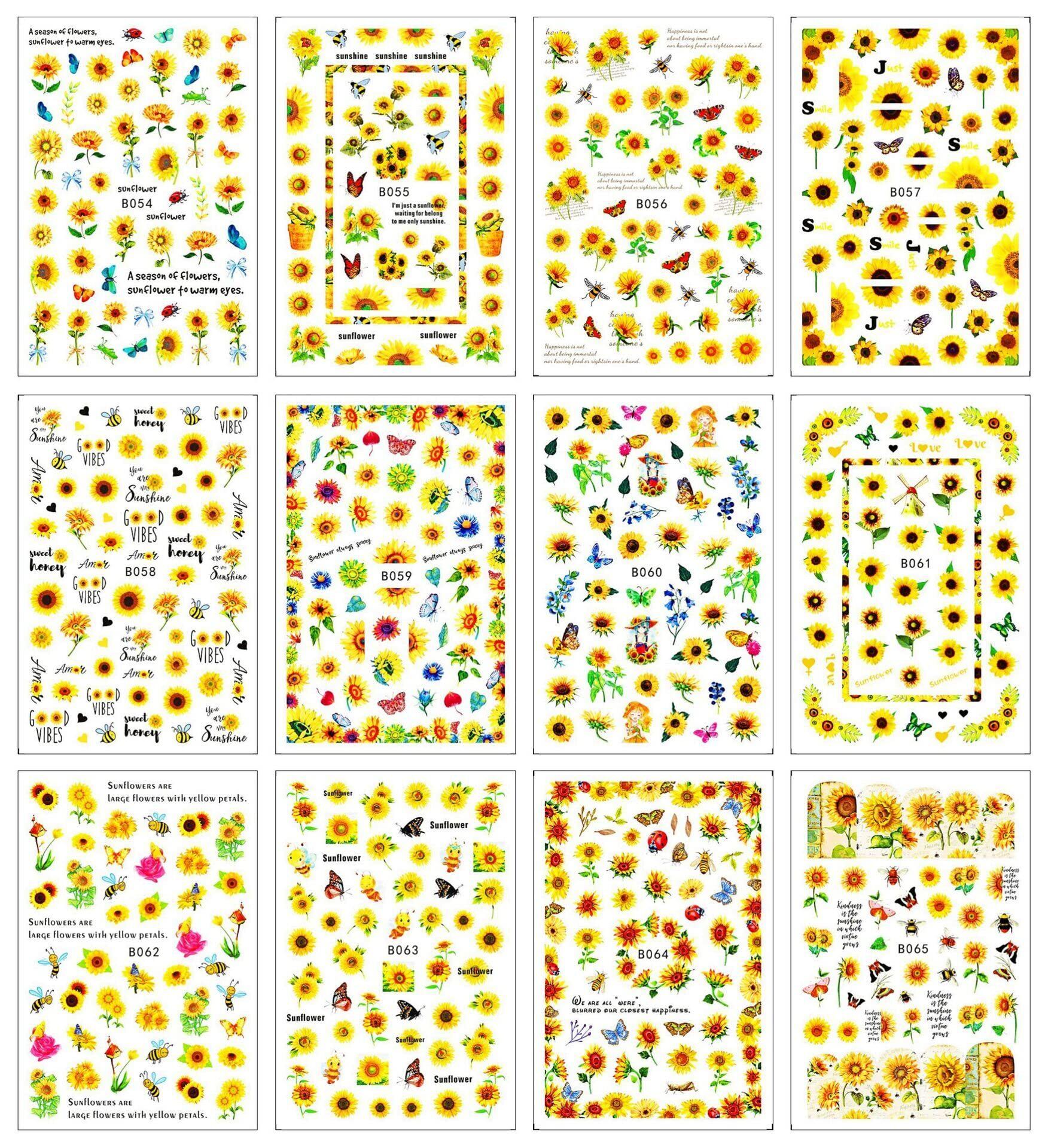 セットに含まれるもの:12枚 ネイルシール トラ 3D 複数のスタイル ひまわり DIY ネイルシールセット 綺麗です 植物
