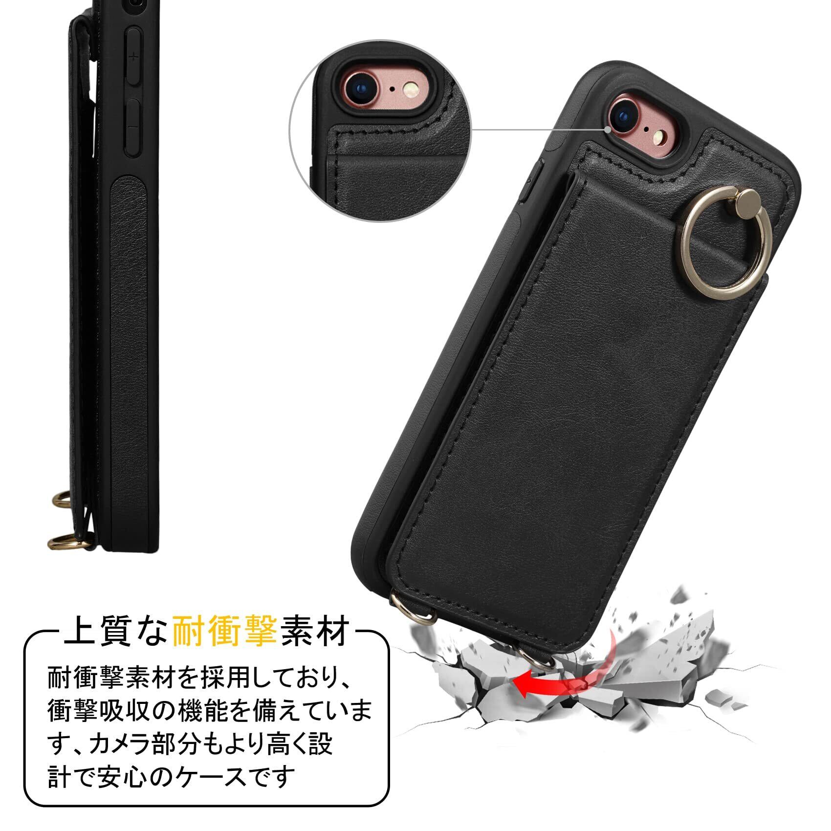 Shlybaay iPhone SE3 ケース 背面 手帳型 SE2 手帳型ケース iPhone8 カードケース se 第3世代 スマホケース SE2 第2世代 手帳型ケース iPhone7 背面ケース ショルダー ストラップ PUレザー 肩掛け カード収納 斜め掛け スタンド アイホン あいほん SE2 SE3 2022 ケース 可愛い 人気 おしゃれ