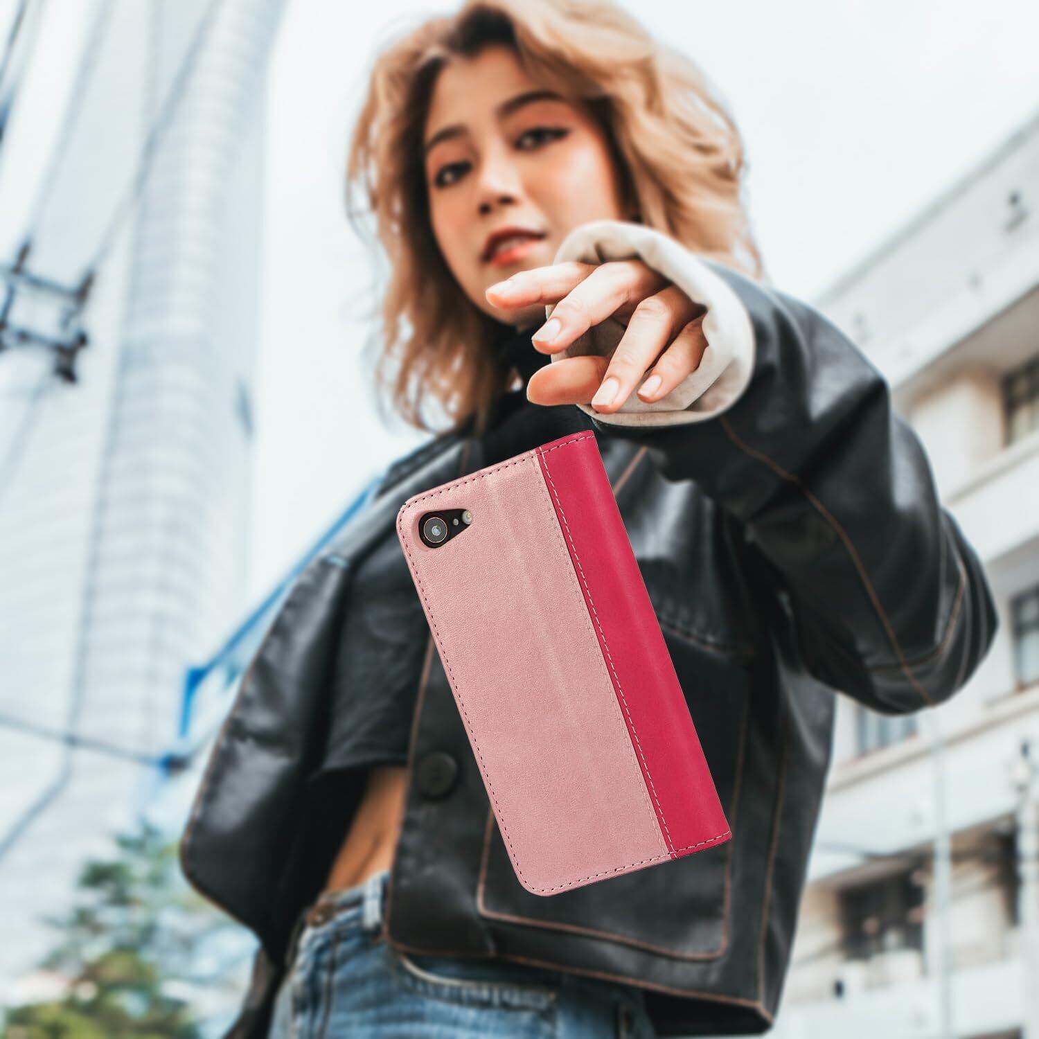 Havaya iPhone SE ケース 第3世代 第2世代 iphone8 ケース iphone7ケース 手帳型 耐衝撃 カバー マグネット カード収納(アイフォンSE3 /あいふぉんSE2/いphone8/アイホン7 4.7インチ対応)-ローズゴールド+ローズ