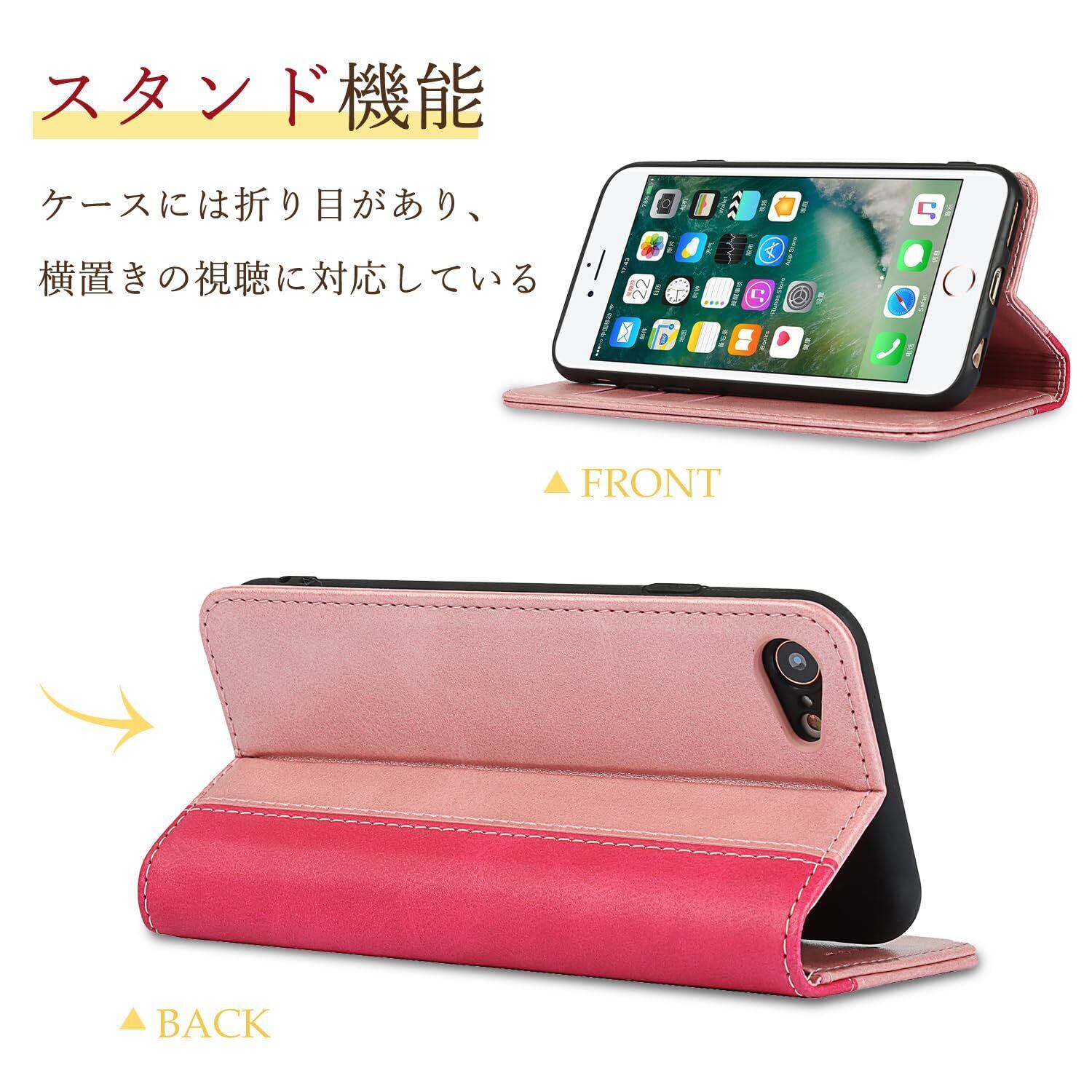 【収納機能】iPhone 7/8/SE 2020/SE 2022ケース内側には三つのカード入れとフリーポケットがつき、カード類や紙幣、名刺などが収納できます。カードスロットに2枚のカードを入れると、内蔵マグネットの機能を最大限に発揮し、カードが消磁されるのを防ぐことができます。横置きスタンド機能が付き、横向いて斜めに立てて、自由に角度を調整して、お好みの角度で動画鑑賞や読書などを楽しめます。長時間での新幹線、飛行機の中での暇つぶしに最適です。