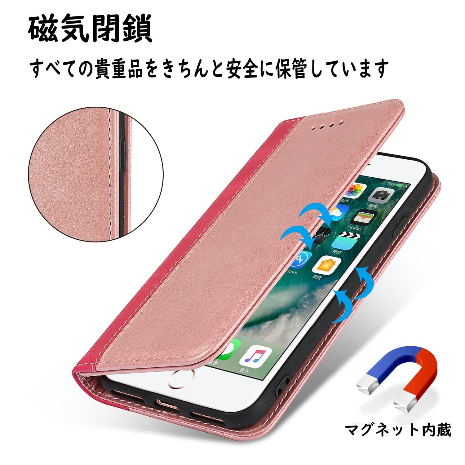 【人気商品】Havaya iPhone SE ケース 第3世代 第2世代 iphone8 ケース iphone7ケース 手帳型 耐衝撃 カバー マグネット カード収納(アイフォンSE3 /あいふぉんSE2/いphone8/アイホン7 4.7インチ対応)-ローズゴールド+ローズ