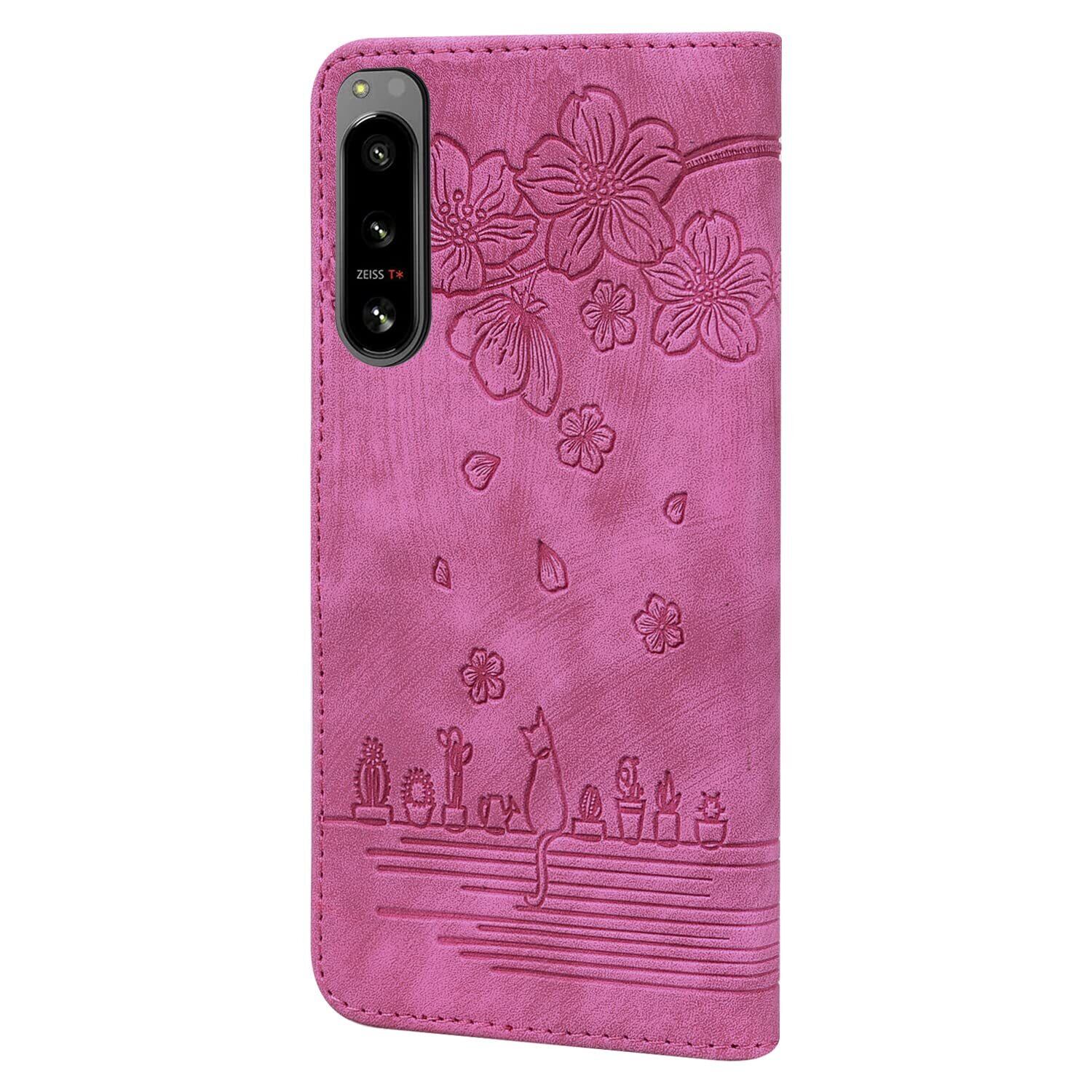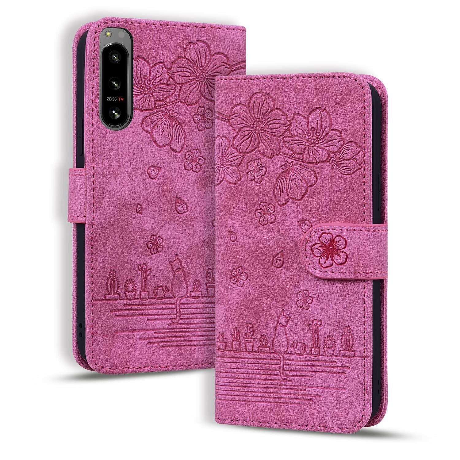 Torske Xperia 5 IV カバー 手帳型 さくら柄 エクスペリア 5 IV ケース Xperia5 IV 手帳型ケース 油絵デザイン ヴィンテージカラー 快適な質感 財布型 Sony Xperia 5 IV SO-54C スマホケース Xperia 5 IV ケース カード収納あり 使う便利性 SO-54C ケース 全面保護 エクスペリア 5 IV 携帯ケース 6.1インチ ローズレッド