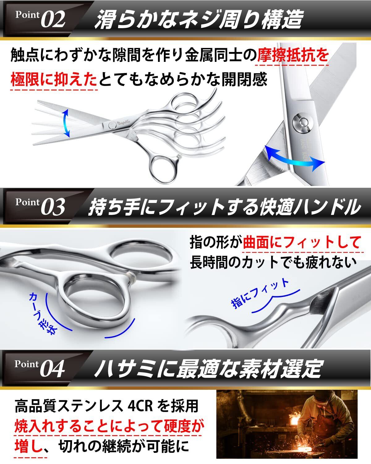 【切れの継続】 高品質ステンレス4CRを採用。熱処理する事によって硬度が増し、切れ味が長続きします。付属のマニュアルに日常のお手入れ方法も詳しく記載しておりますので、大切なハサミを末永くご愛用いただけます。
