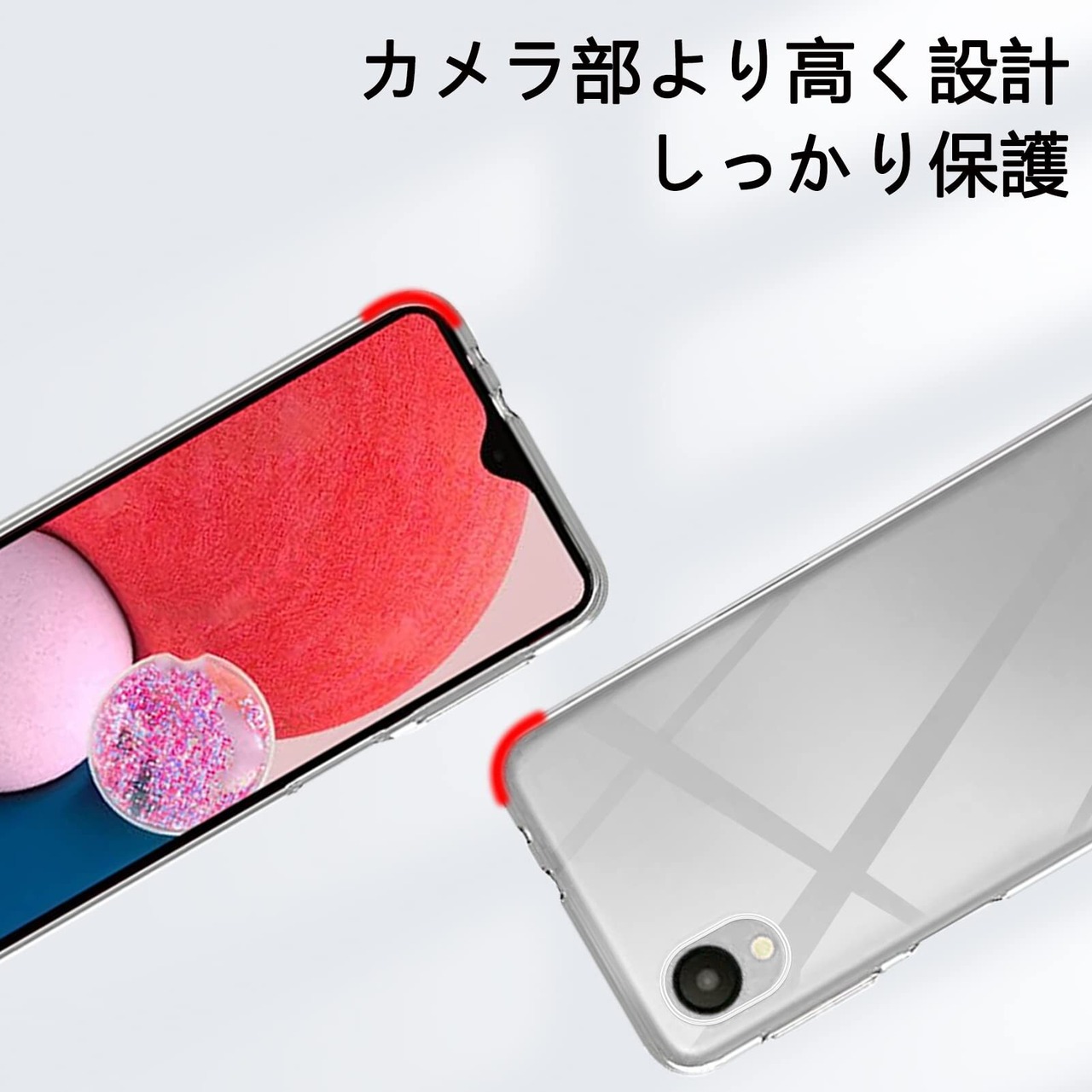 【対応機種】2022年発売の5.8インチGalaxy A23 5G SCG18/SC-56C専用TPUクリアケースカバーです。液晶ガラスフィルム1枚付きのお得なセットで、Galaxy A23スマホ本体の画面と背面をしっかり保護してくれます。透明なデザインで端末の美しい外観をそのまま楽しめます。