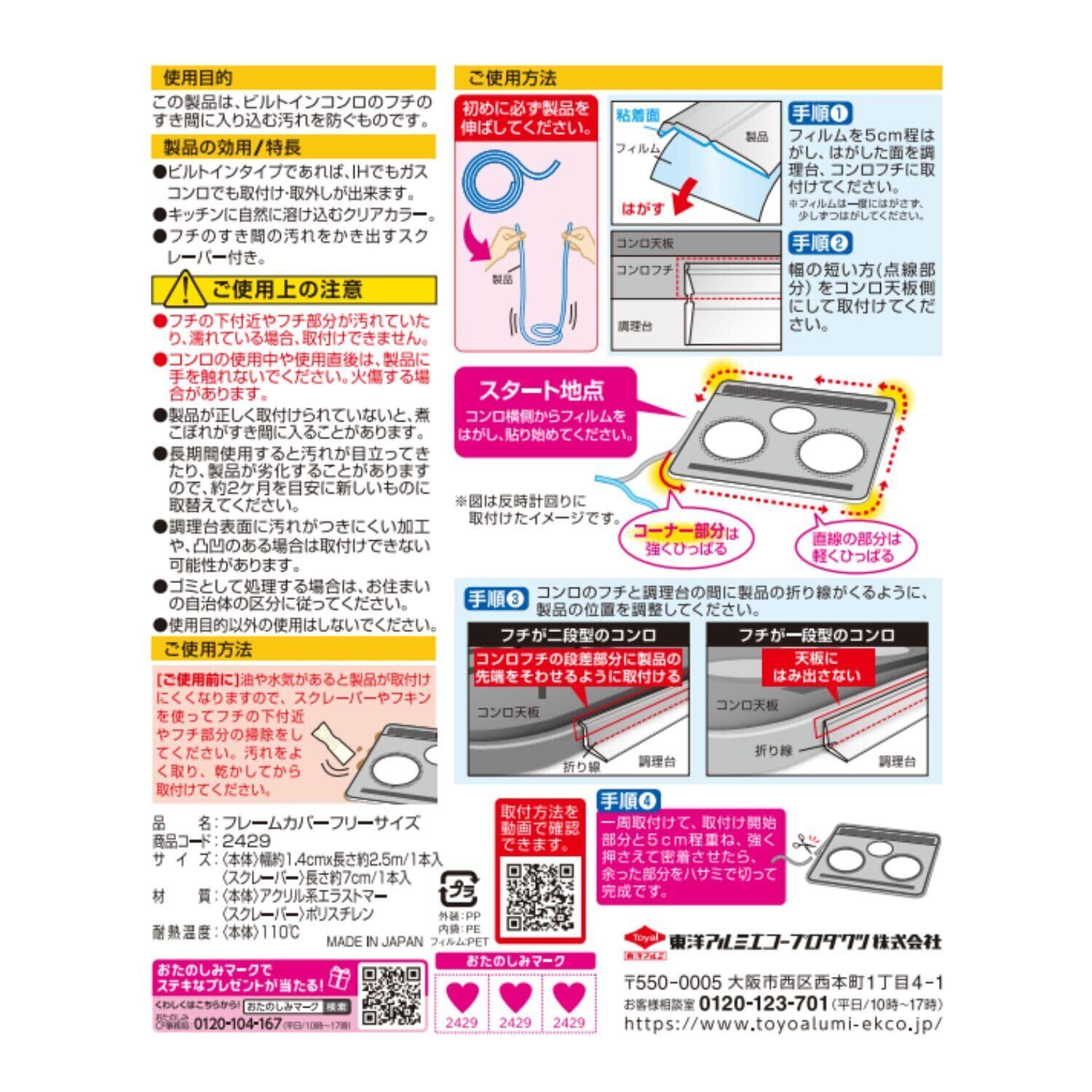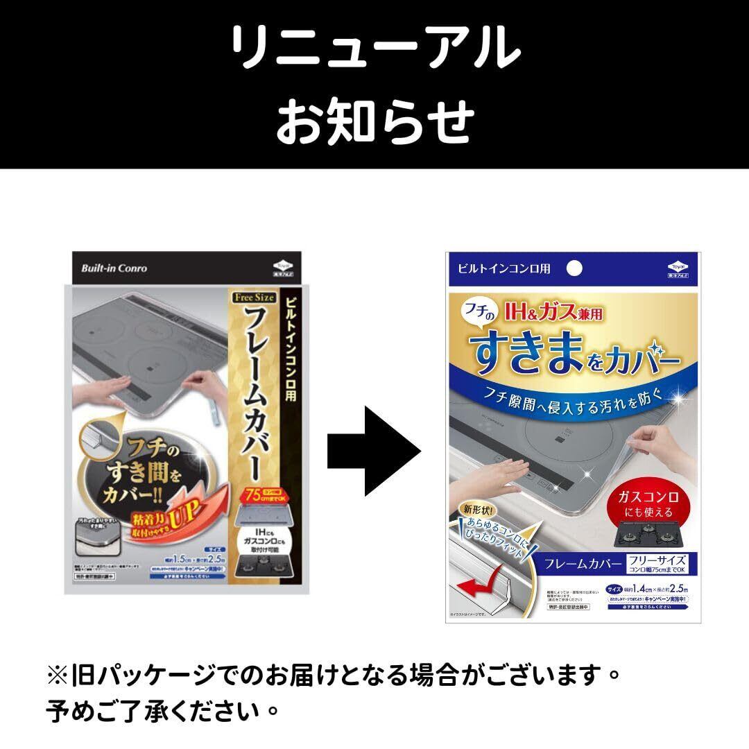 「ビルトインコンロ用NEW フレームカバー フリーサイズ 1cm×2.5m」は、ビルトインタイプであれば、IHでもガスコンロでも取付け・取外し可能なフレームカバーです。