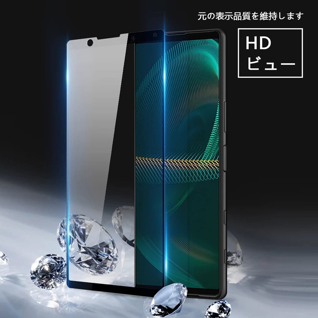 【強力なプロセス】超薄型フィルムを利用して、自然吸着し、本体とフィルムは変形せず、誰でも簡単に、きれいに貼り付けることができる。表面強度指数は9 Hで一般的なフィルムの3倍で、万が一割れてしまったらガラスの破片がほとんど飛び散りにくく安心です。携帯電話をしっかり保護でき、Xperia 5 iiiの画面での操作も違和感なくスムーズに行えます。