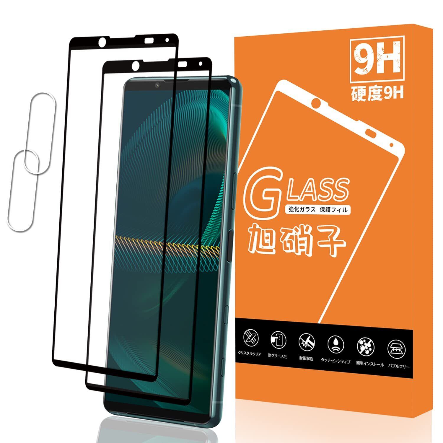 【新着商品】【2+2保護フィルム】Sony Xperia 5 III用強化ガラスフィルム、レンズプロテクター2枚+スクリーンプロテクター2枚、ガイドフレーム付き、滑り止めパッド、日本旭硝子素材、新シルクスクリーン技術、硬度9H、曲面エッジ、HD 、指紋防止、傷防止、花、疎水性、飛散防止